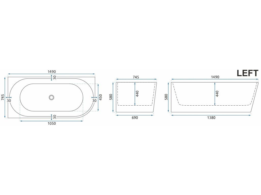 Akrylová rohová vaňa SYDNEY BELLANTO LEFT 150cm