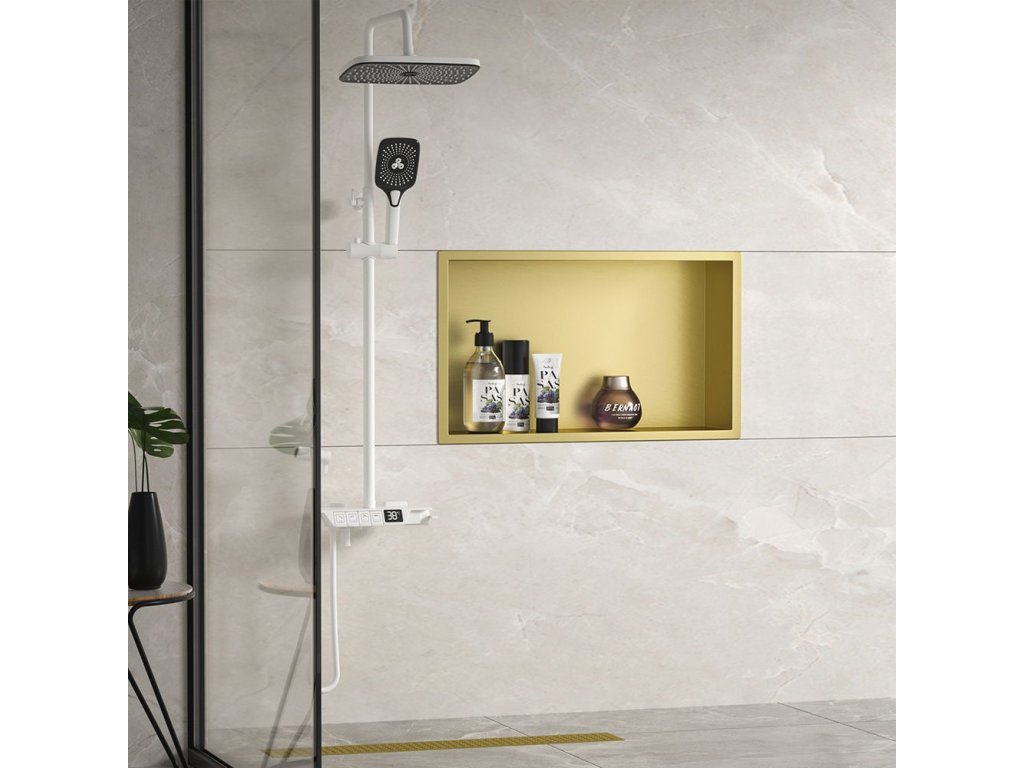 Kúpeľňová polica je praktickým riešením na usporiadanie priestoru v kúpeľni. Je vyrobená z odolného materiálu, ktorý poskytuje trvanlivosť a stabilitu. Jej funkčný dizajn sa dokonale hodí do rôznych kúpeľňových usporiadaní a umožní vám uložiť kozmetiku, uteráky alebo iné nevyhnutné doplnky. Vďaka možnosti montáže do výklenku polica výborne využíva dostupný priestor a zároveň dodáva kúpeľni elegantný vzhľad.Dodatočné parametre