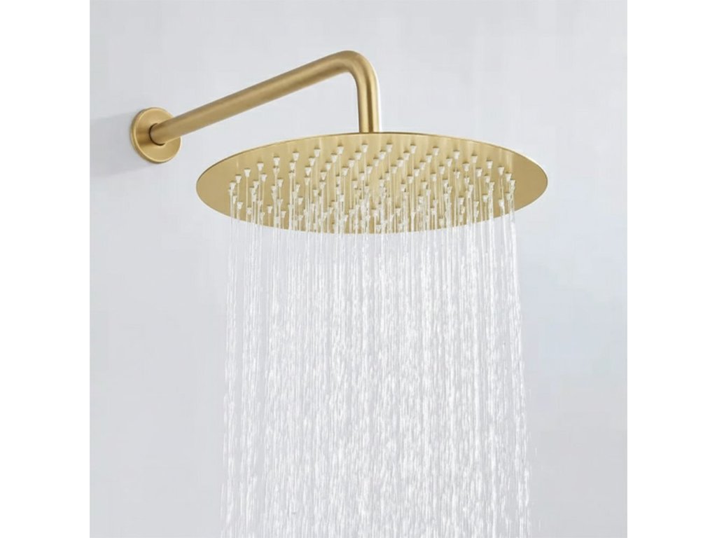 Moderná sprchová hlavica s priemerom 25 cm v zlatej farbe je elegantným a praktickým prvkom sprchovej zóny. Vyrobená z kvalitných materiálov, zaručuje odolnosť proti vlhkosti a každodennému používaniu. Vďaka minimalistickému okrúhlemu tvaru sa dokonale hodí do kúpeľní v štýle glamour, moderných aj klasických. Sprchová hlavica poskytuje rovnomerný prúd vody a vytvára efekt relaxačnej „rain shower“ sprchy. Ide len o hlavicu – náhradný diel, ktorý možno použiť k existujúcej sprchovej sade.