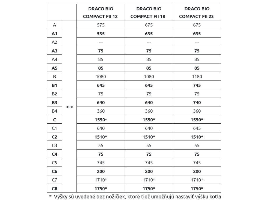 DRACO BIO COMPACT FII automatický peletový kotol\n\nDraco Bio Compact F II je automatický kotol na spaľovanie biomasy vo forme peliet s priemerom 6 - 8 mm, triedy A, A1 a B.\n\nPalivová nádrž umiestnená v hornej časti kotla umožňuje minimalizovať jeho vonkajšie rozmery, čo značne uľahčuje montáž aj v malých kotolniach. Malá výška kotla umožňuje bezproblémové dopĺňanie paliva pre užívateľa. Aby sa zvýšila kapacita zásobníka, je do každého kotla dodávaná tzv. nadstavba, vďaka čomu sa zvyšuje kapacita zásobníka o 90l.\n\nPoužitý horák Fireblast II s pohyblivým roštom a pokročilým regulátorom ESTYMA IGNEO TOUCH s farebnou dotykovou obrazovkou poskytuje vysoký komfort používania kotla, a znižuje potrebu obsluhy na nevyhnutné minimum.\n\nVybavenie kotla:\n\nset keramických katalyzátorov\nregulátor ESTYMA IGNEO TOUCH\nhorák na pelety FIREBLAST II s automatickým čistením\npríslušenstvo na čistenie kotla\nnožičky na nastavenie rovnováhy kotla\nnadstavba pre zväčšenie objemu zásobníka paliva\nvonkajšie čidlo\nDoplnkové príslušenstvo:\n\nOvládacie balíčky- káblové aj bezkáblové s možnosťou ovládania cez internet, mob. aplikáciu (viď cenník na stiahnutie)\nOvládacie balíčky- káblové aj bezkáblové bez možnosti ovládania cez internet (viď cenník na stiahnutie)\nTeplomer spalín\nEstima - snímač paliva v zásobníku\nVIDE ROOM\nVIDE NET\nSMARTFLOW - regulátor ťahu komína\nLambda sonda\nSnímaš tlaku v inštalácií\nRozširovací modul\nteplomer spalín\nštvorcestný zmiešavací ventil\nservopohon zmiešavacieho ventilu\ndvojčinný termostatický chladiaci ventil DBV-1\nVýhody kotla:\n\n5 trieda z hľadiska účinnosti a emisií zhodne s normou PN-EN 303-5:2012 a tiež ekodizajn\n5-ročná záruka na tesnosť kotlového výmenníka\nmožnosť zmeny strán otvárania dvierok\nkryt kotla a nádrž lakovaná práškovou farbou\nmožnosť rozšírenia zásobníka paliva, nainštalovaním nadstavby zásobníka\njednoduchá a rýchla obsluha i údržba\nmožnosť pripojenia izbového termostatu VIDE Room (za doplatok)\núplne automatická prevádzka kotla ( automatické rozhorenie a čistenie horáka)\novládanie 2 vykurovacích okruhov (2 nezávislé vonkajšie čidlá) a okruh TÚV\nmožnosť regulácie teploty spiatočky ovládaním pohonu na štvorcestnom ventile\nmožnosť pripojenia priestorového termostatu\nučiaci sa algoritmus EILC\nmodulácia výkonu FL3\nautomatická konfigurácia čidiel a funkcií\nkomplexné štatistikyDodatočné parametre