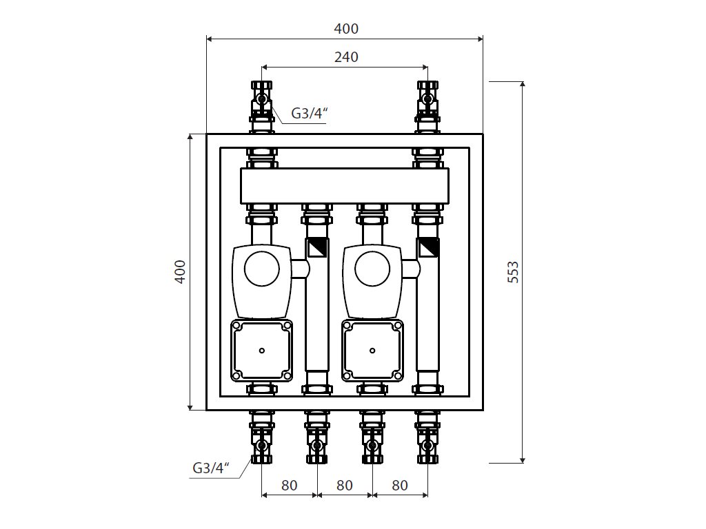 FinBox - Univerzálne riešenie čerpadlových skupín\nFinBox je moderné a univerzálne riešenie čerpadlových skupín, ktoré ponúka až 7 rôznych kombinácií v kompaktnom uzamykateľnom boxe s krytím IP64. Je navrhnutý na použitie vo vykurovacích a chladiacich systémoch, pričom umožňuje pripojenie okruhu s požadovanou teplotou vykurovacej vody – či už nižšou alebo vyššou ako teplota z prívodného zdroja tepla. Zároveň môže slúžiť ako ochrana zdroja tepla pred nízkoteplotnou koróziou.\n\nKľúčové vlastnosti:\n• Kompaktné prevedenie: FinBox je vhodný na montáž priamo pod kotol, čím šetrí priestor.\n• Flexibilné použitie: Možnosť inštalovať obehové čerpadlo od rôznych výrobcov so stavebnou dĺžkou 130 mm. Pripojenie čerpadla je zabezpečené cez prevlečnú maticu s vnútorným závitom 1“.\n• Presné meranie: Každá čerpadlová skupina je vybavená sondami na meranie teploty média, pričom hodnoty teplôt sú prehľadne zobrazené na elektronických displejoch na prednej strane krytu.\n• Vyhotovenie s rozdeľovačom: Možnosť výberu medzi rozdeľovačom alebo rozdeľovačom s integrovanou hydraulickou výhybkou (anuloidom).\n\n\nTechnické parametre:\n• Maximálny prietok cez rozdeľovač (zo strany kotla): 1500 l/h\n• Maximálny prietok s 3D termostatickým ventilom: 1100 l/h\n• Maximálny prietok s 3D ventilom so servopohonom: 1300 l/h\n• Maximálny prietok bez zmiešavania: 1350 l/h\n• Určené pre kotly s maximálnym výkonom do 26 kW\n• Skontrolované na tesnosť a pripravené na okamžitú prevádzku\n\nObsah balenia:\n\nKaždá sada obsahuje redukované guľové ventily 1“x3/4“ (6 ks s tesnením). \n\nPodľa konfigurácie môžu byť v balení nasledujúce komponenty:\n\n• Čerpadlo: Grundfos UPM3 AUTO 15-70 130\n• Zmiešavací ventil: ESBE VRG 132 1“, Kvs 6,3 m³/h\n• Termostatický ventil: ESBE VTA 372 1“, 3,4 m³/h, 20-43 °C\n• Pohon: ESBE ARA 561 (230V, trojbodový) alebo na požiadanie pohon ESBE ARA 639 (proporcionálny 24V / 0-10V)\n\nFinBox predstavuje spoľahlivé, flexibilné a efektívne riešenie na optimalizáciu vykurovacích a chladiacich systémov, ktoré spĺňa vysoké technické aj bezpečnostné štandardy.\nSkontrolované na tesnosť a pripravené na okamžitú prevádzku\nVšetky náhradné komponenty máme skladom.Dodatočné parametre