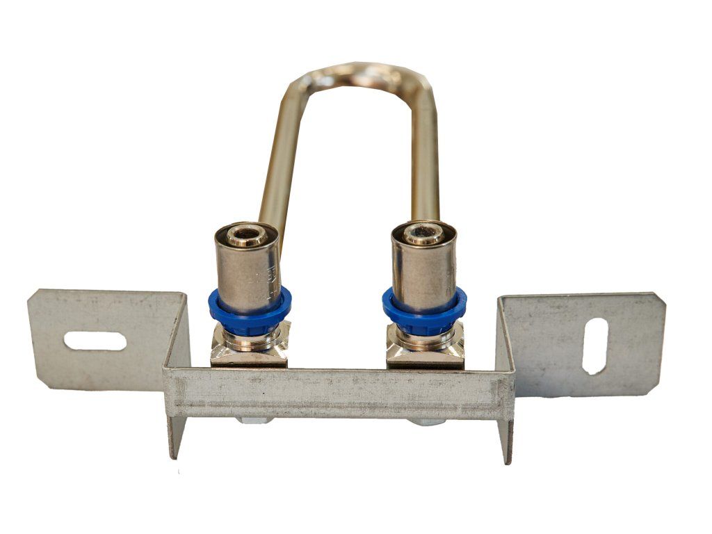Dvojitá garnitúra na pripojenie vykurovacích telies s držiakom je praktické riešenie pre jednoduché a spoľahlivé pripojenie radiátorov k vykurovaciemu systému. Táto garnitúra umožňuje rýchle a bezpečné prepojenie vykurovacieho telesa, pričom ponúka flexibilitu vďaka univerzálnemu pripojeniu. \n\nTechnické parametre produktu: \n• Pripojenie PEX: 16x2 mm – umožňuje priame napojenie na plastohliníkové potrubie. \n• Pripojenie na strane telesa: medené potrubie s priemerom 15 mm. \n• Integrovaný držiak: Zaisťuje stabilné uchytenie a správnu polohu garnitúry.\n\nVýhody produktu: \n• Jednoduchá inštalácia: Rýchle a jednoduché pripojenie vykurovacieho telesa bez zložitých úprav. \n• Stabilita: Držiak zaručuje pevné uchytenie pripojenia pre dlhodobú a bezproblémovú prevádzku. \n\nTáto garnitúra je ideálnym riešením pre profesionálne aj domáce inštalácie vykurovacích systémov. Umožňuje efektívne a estetické prepojenie vykurovacích telies s potrubím, pričom ponúka spoľahlivosť a jednoduchú montáž.\nDodatočné parametre