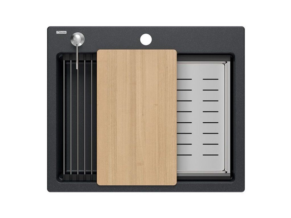 granitový drez KURT 110 WORKSTATION Black Dotted