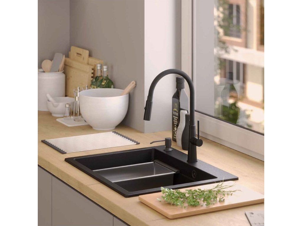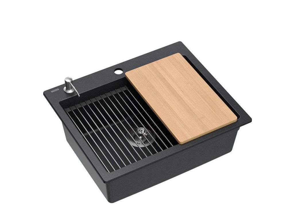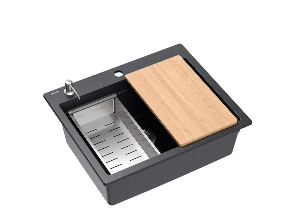 Dranitový drez vyrobený s minimalistickým moderným vzhľadom zapadne do aranžmánu každej kuchyne. Hlboká a priestranná komora zaisťuje vysoký komfort používania. Umývadlo, ktoré ponúkame, je skvelou voľbou pre zákazníkov, ktorí ocenia kvalitu a spracovanie. Nadčasový tvar, použitie prvotriednych materiálov a technológií, skvelý dizajn a kompatibilita použitých riešení zaručujú dokonalý konečný výsledok a vyplnia každý kuchynský priestor. K dispozícii sú rôzne farebné varianty. Tento model je veľmi bohato vybavený doplnkovými kuchynskými doplnkami. Drez je dodávaný s dávkovačom tekutín, bambusovou doskou na krájanie, odkvapkávačom a valcovanou oceľovo-silikónovou podložkou.Dodatočné parametre