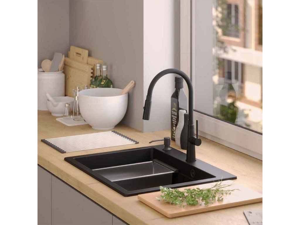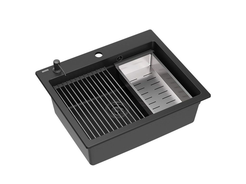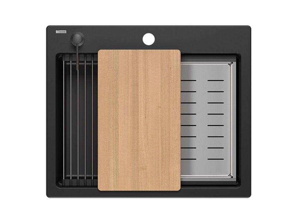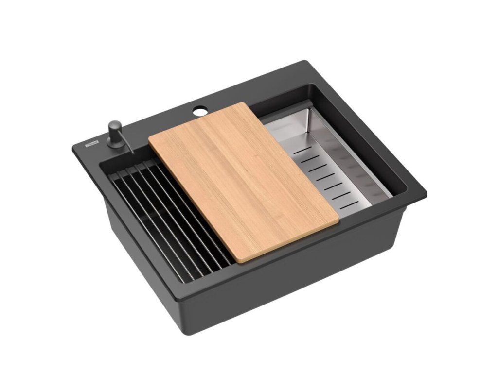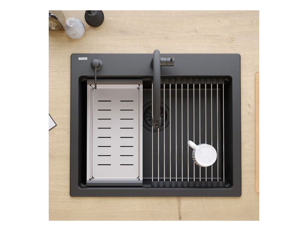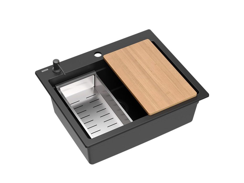 Dranitový drez vyrobený s minimalistickým moderným vzhľadom zapadne do aranžmánu každej kuchyne. Hlboká a priestranná komora zaisťuje vysoký komfort používania. Umývadlo, ktoré ponúkame, je skvelou voľbou pre zákazníkov, ktorí ocenia kvalitu a spracovanie. Nadčasový tvar, použitie prvotriednych materiálov a technológií, skvelý dizajn a kompatibilita použitých riešení zaručujú dokonalý konečný výsledok a vyplnia každý kuchynský priestor. K dispozícii sú rôzne farebné varianty. Tento model je veľmi bohato vybavený doplnkovými kuchynskými doplnkami. Drez je dodávaný s dávkovačom tekutín, bambusovou doskou na krájanie, odkvapkávačom a valcovanou oceľovo-silikónovou podložkou.Dodatočné parametre