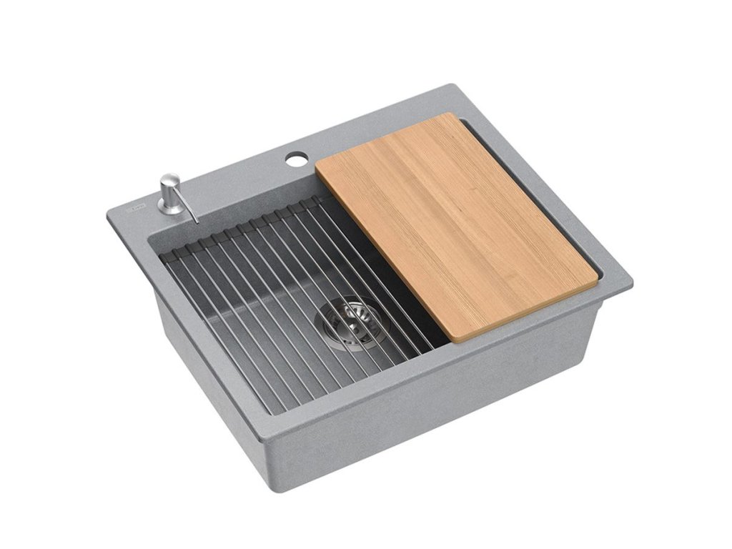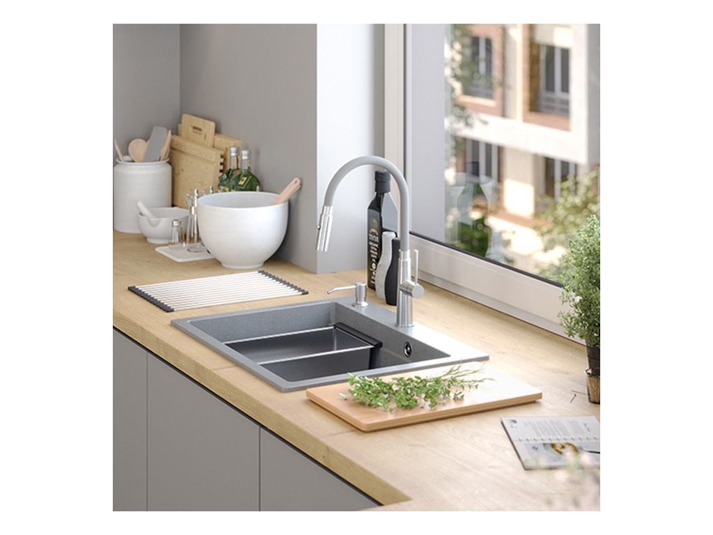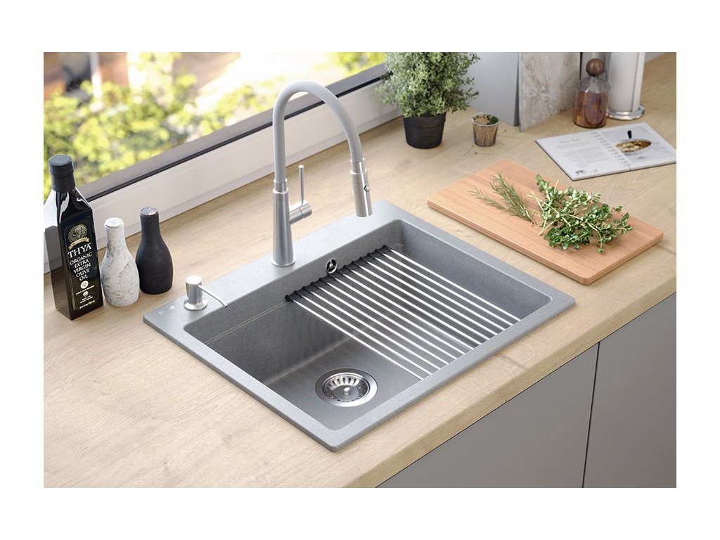 Dranitový drez vyrobený s minimalistickým moderným vzhľadom zapadne do aranžmánu každej kuchyne. Hlboká a priestranná komora zaisťuje vysoký komfort používania. Umývadlo, ktoré ponúkame, je skvelou voľbou pre zákazníkov, ktorí ocenia kvalitu a spracovanie. Nadčasový tvar, použitie prvotriednych materiálov a technológií, skvelý dizajn a kompatibilita použitých riešení zaručujú dokonalý konečný výsledok a vyplnia každý kuchynský priestor. K dispozícii sú rôzne farebné varianty. Tento model je veľmi bohato vybavený doplnkovými kuchynskými doplnkami. Drez je dodávaný s dávkovačom tekutín, bambusovou doskou na krájanie, odkvapkávačom a valcovanou oceľovo-silikónovou podložkou.Dodatočné parametre