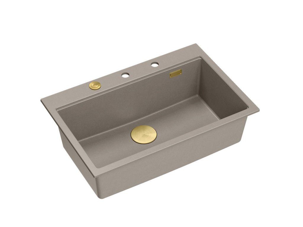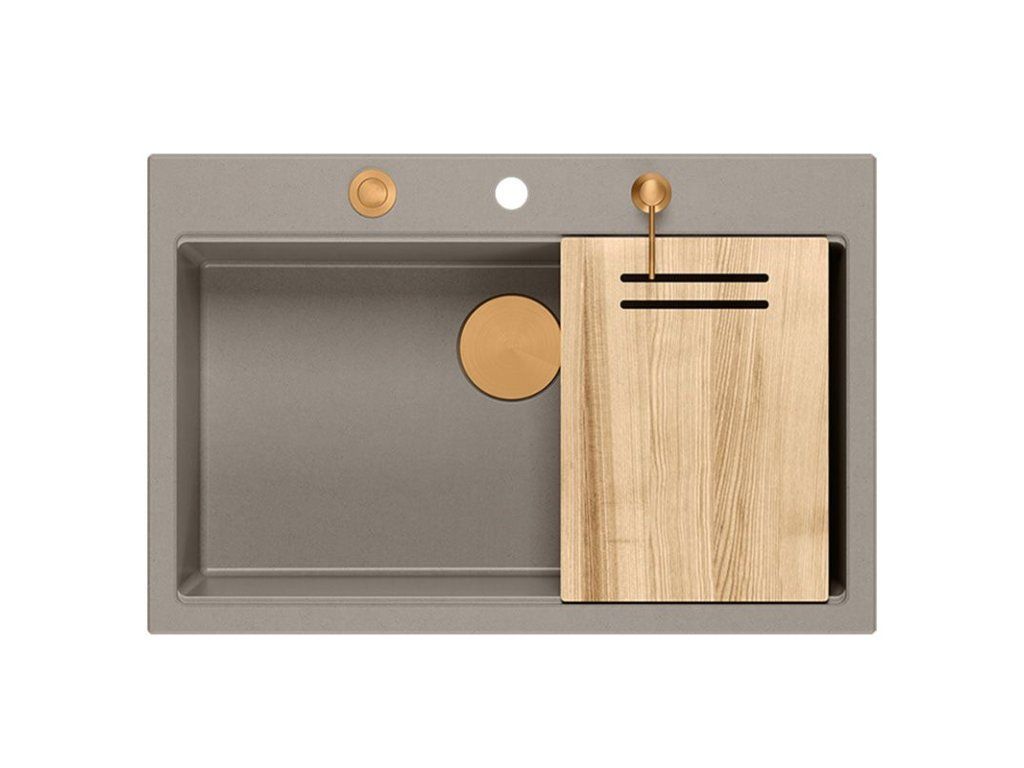 Dranitový drez vyrobený s minimalistickým moderným vzhľadom zapadne do aranžmánu každej kuchyne. Hlboká a priestranná komora zaisťuje vysoký komfort používania. Umývadlo, ktoré ponúkame, je skvelou voľbou pre zákazníkov, ktorí ocenia kvalitu a spracovanie. Nadčasový tvar, použitie prvotriednych materiálov a technológií, skvelý dizajn a kompatibilita použitých riešení zaručujú dokonalý konečný výsledok a vyplnia každý kuchynský priestor. K dispozícii sú rôzne farebné varianty. Tento model je veľmi bohato vybavený doplnkovými kuchynskými doplnkami. Drez je dodávaný s dávkovačom tekutín, bambusovou doskou na krájanie, odkvapkávačom a valcovanou oceľovo-silikónovou podložkou (nie je súčasťou sady v zlatej a medenej variante).Dodatočné parametre