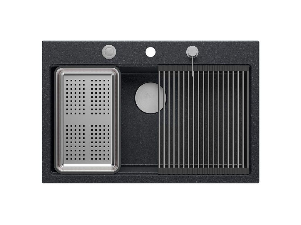 granitový drez MARC 110 WORKSTATION Black Metallic