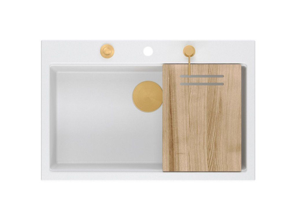 Dranitový drez vyrobený s minimalistickým moderným vzhľadom zapadne do aranžmánu každej kuchyne. Hlboká a priestranná komora zaisťuje vysoký komfort používania. Umývadlo, ktoré ponúkame, je skvelou voľbou pre zákazníkov, ktorí ocenia kvalitu a spracovanie. Nadčasový tvar, použitie prvotriednych materiálov a technológií, skvelý dizajn a kompatibilita použitých riešení zaručujú dokonalý konečný výsledok a vyplnia každý kuchynský priestor. K dispozícii sú rôzne farebné varianty. Tento model je veľmi bohato vybavený doplnkovými kuchynskými doplnkami. Drez je dodávaný s dávkovačom tekutín, bambusovou doskou na krájanie, odkvapkávačom a valcovanou oceľovo-silikónovou podložkou (nie je súčasťou sady v zlatej a medenej variante).Dodatočné parametre