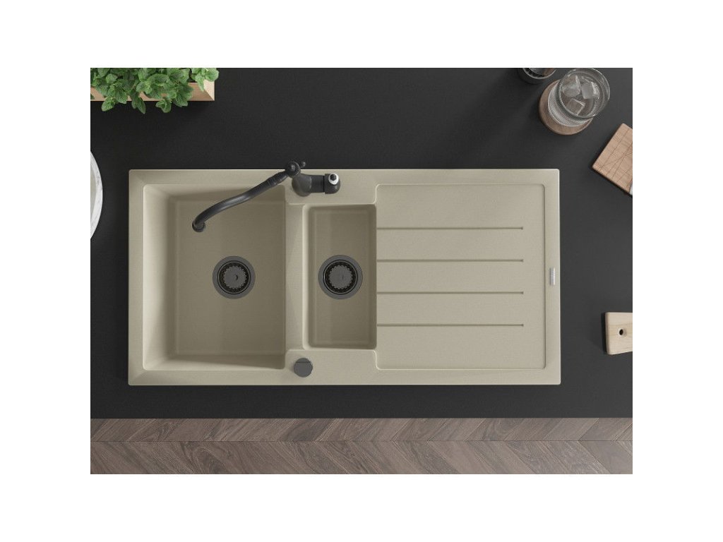 Granitový drez Mexen Andres s 1,5 miskou, odkapávačom a kuchynskou batériou Carla, béžový - 6515-69-670700-70
