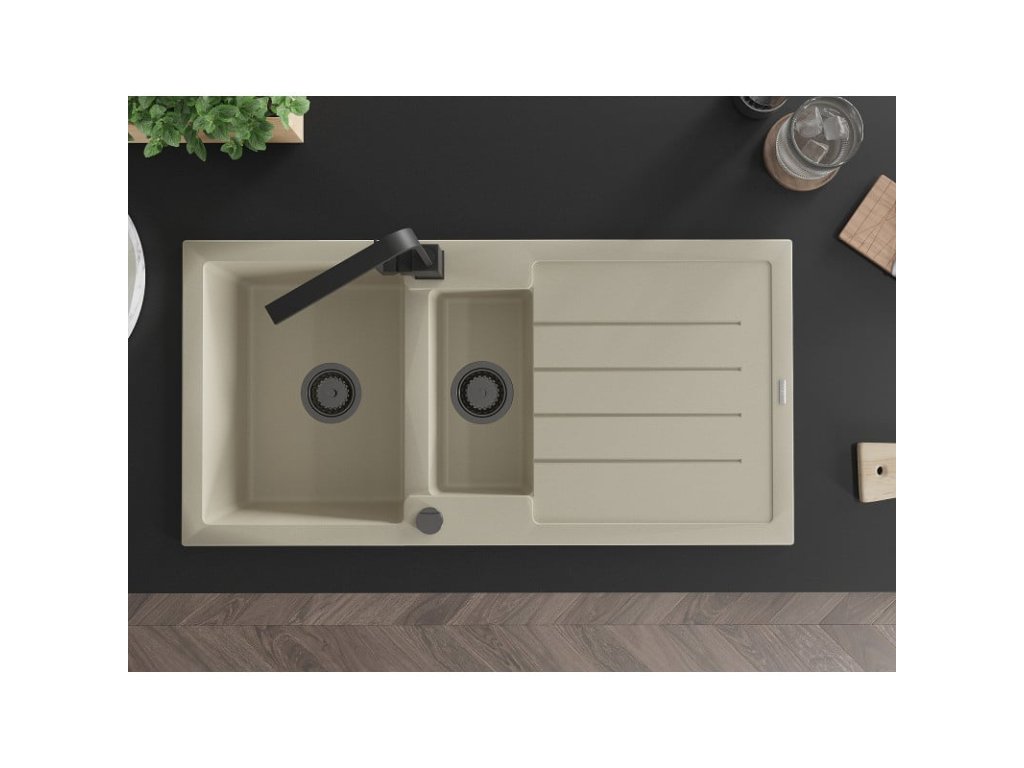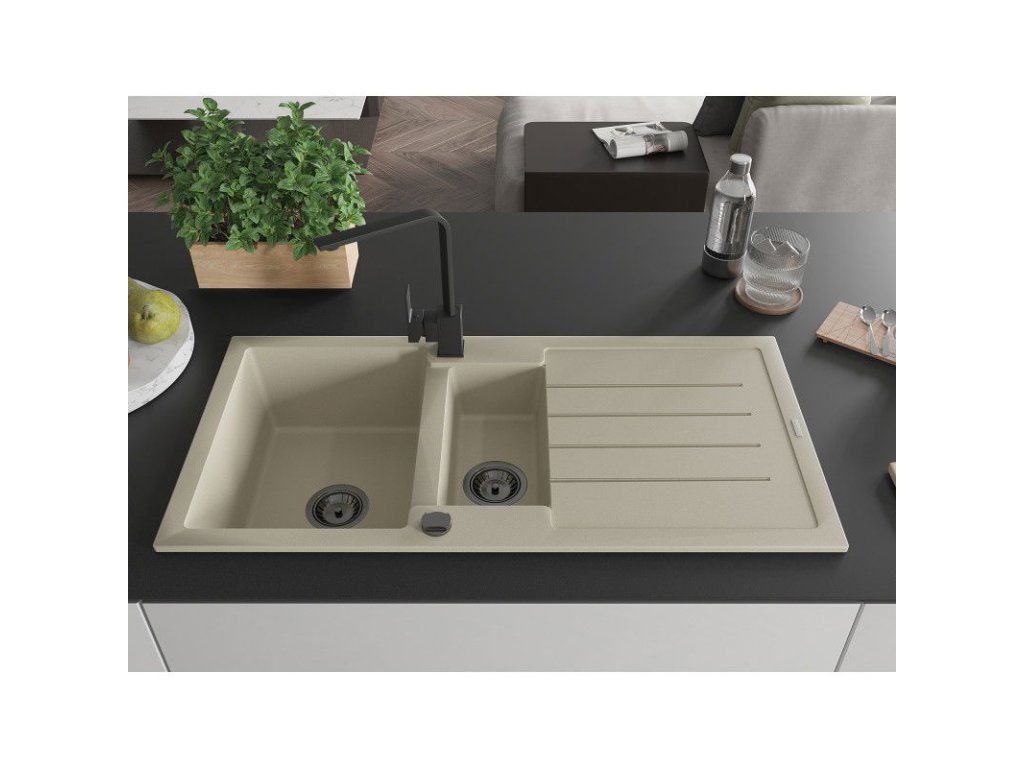 Granitový drez Mexen Andres s 1,5 miskou, odkapávačom a kuchynskou batériou Rita, béžový - 6515-69-670300-70