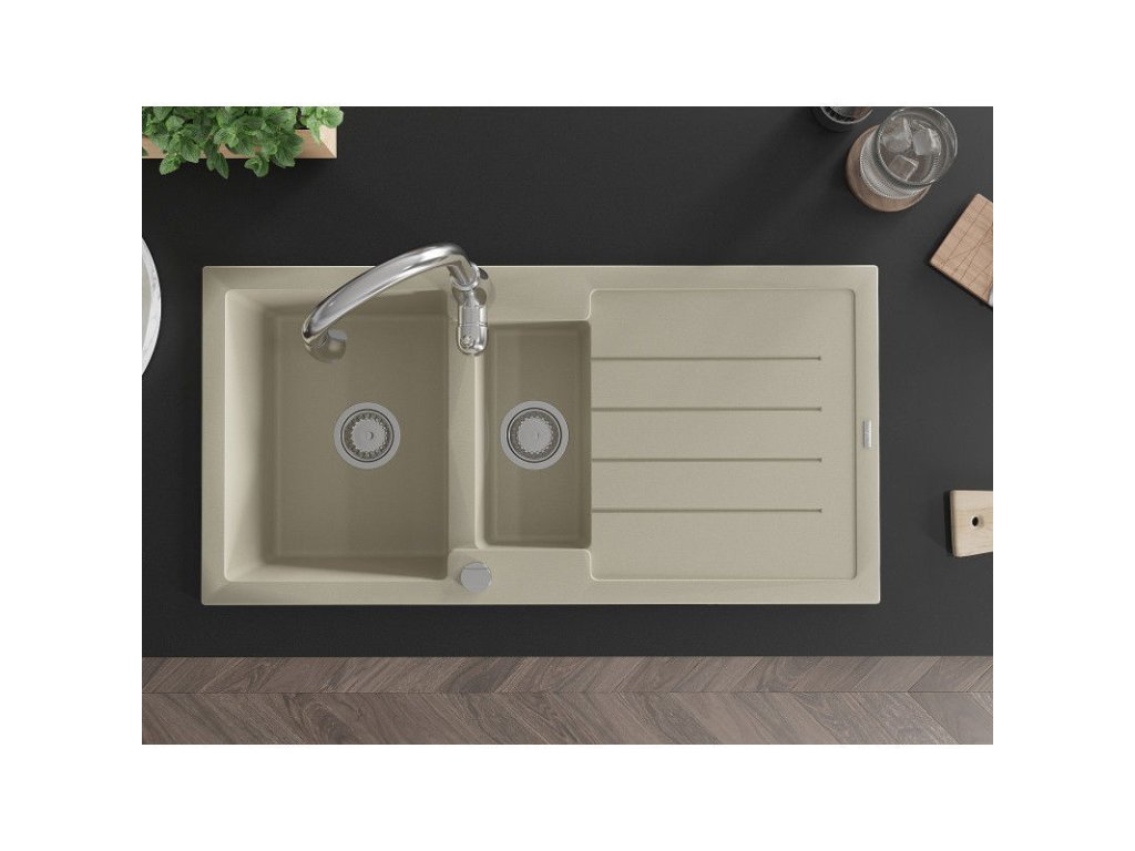 Granitový drez Mexen Andres s 1,5 miskou, odkapávačom a kuchynskou batériou Savita, béžový - 6515-69-672601-00