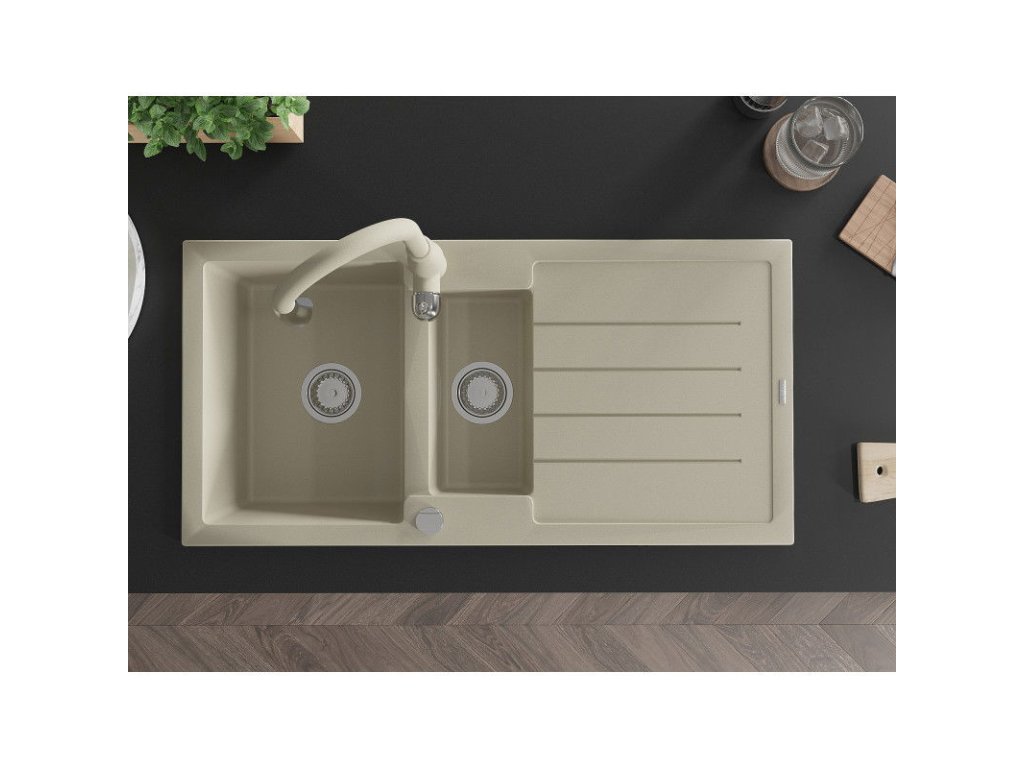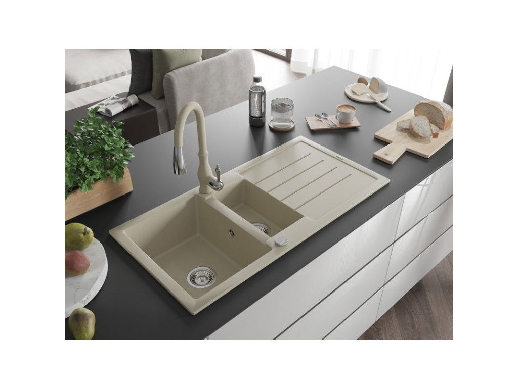 Granitový drez Mexen Andres s 1,5 miskou, odkapávačom a kuchynskou batériou Savita, béžový - 6515-69-672601-69