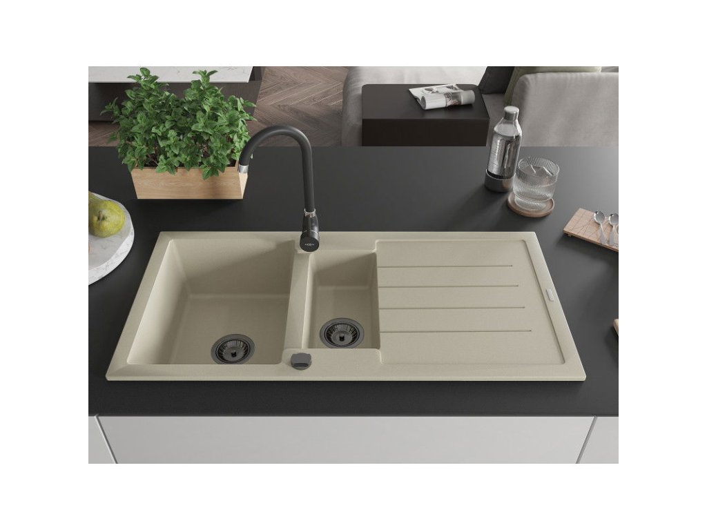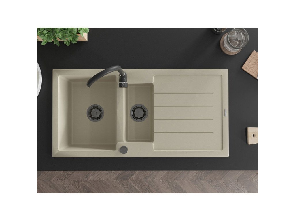 Granitový drez Mexen Andres s 1,5 miskou a odkapávačom 1000 x 500 mm, béžový, čierny sifón - 6515101510-69-B