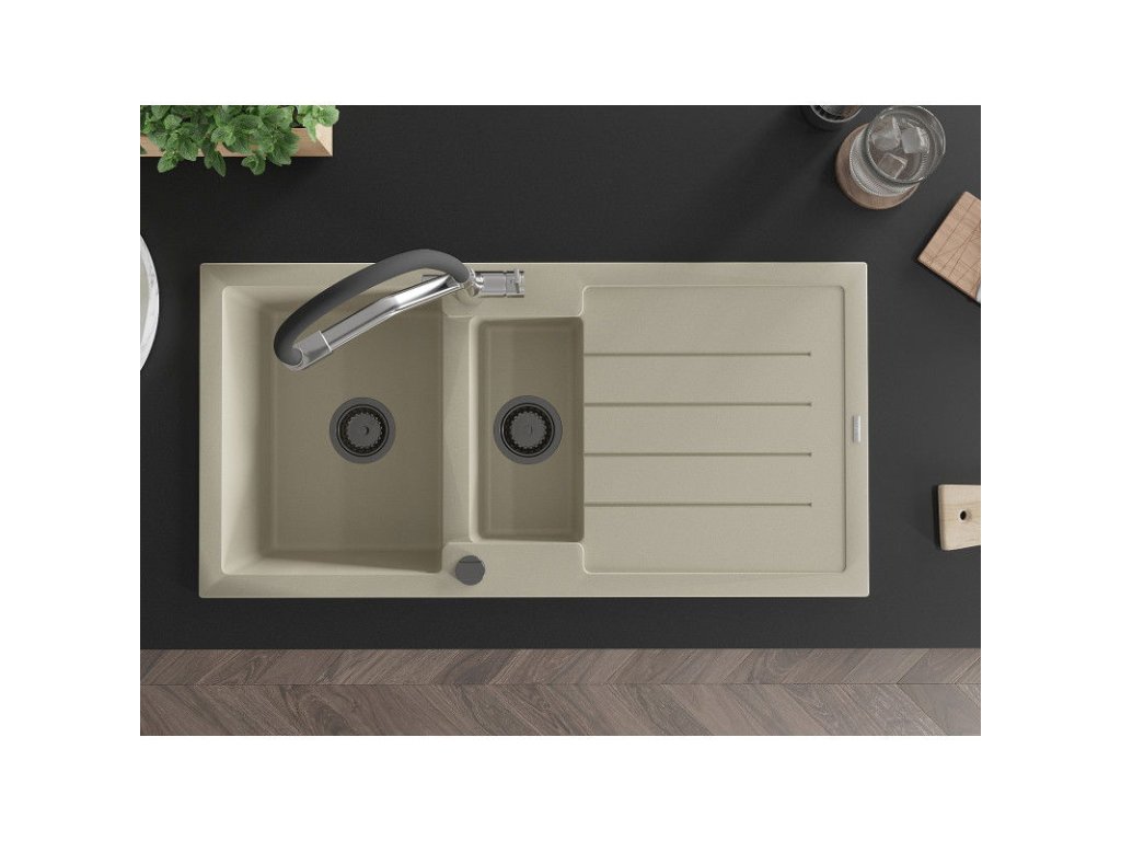 Granitový drez Mexen Andres s 1,5 misky, odkapávačom a kuchynskou batériou Duo, béžový - 6515-69-671701-07-B