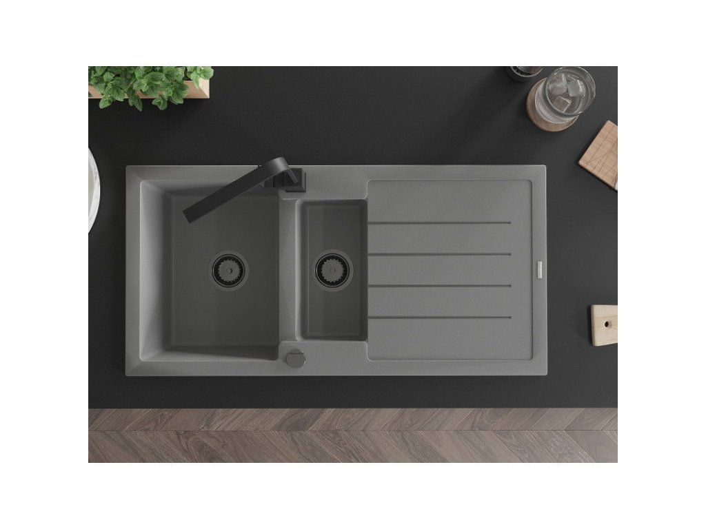 Granitový drez Mexen Andres s 1,5 misky, odkapávačom a kuchynskou batériou Rita, sivý - 6515-71-670300-70-B