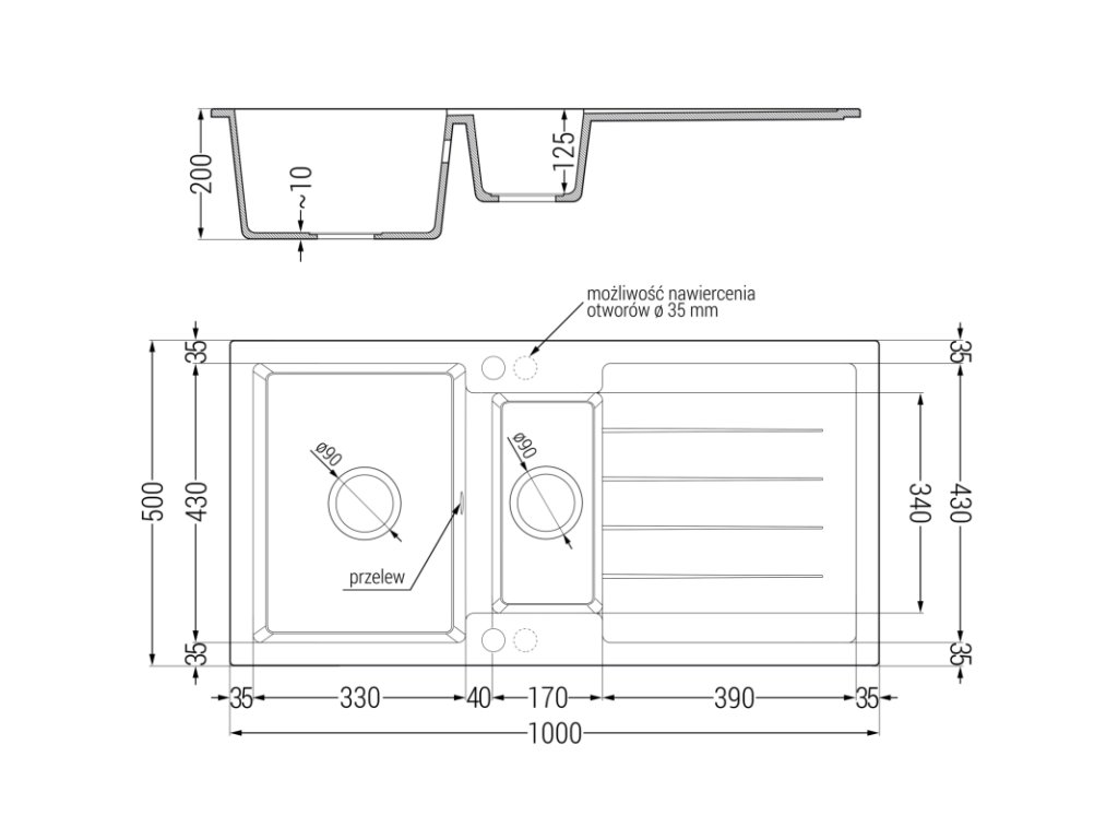 Dva ďalšie otvory pod výliskom ø35 na vlastné dierovanie