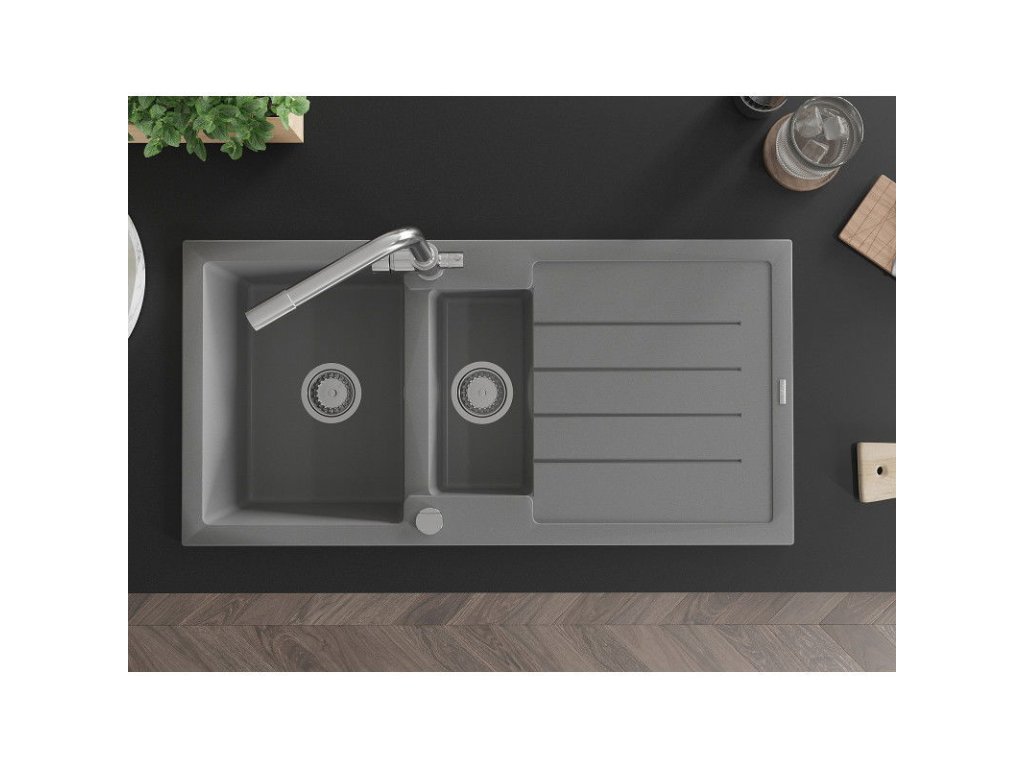 Granitový drez Mexen Andres s 1,5 misy, odkapávačom a kuchynskou batériou Duero, sivý - 6515-71-671600-00