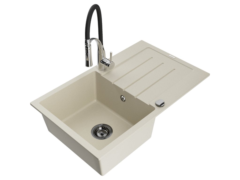Granitový drez Mexen Bruno s 1 misou, odkapávačom a batériou Aster, béžový - 6513-69-73450-07-B