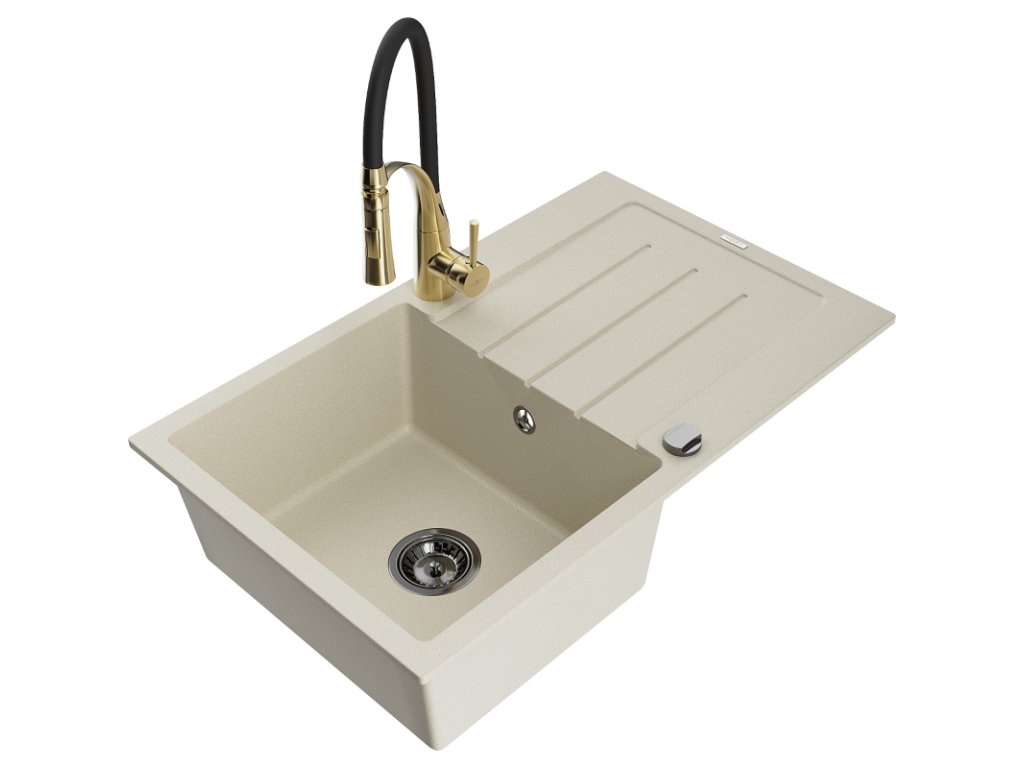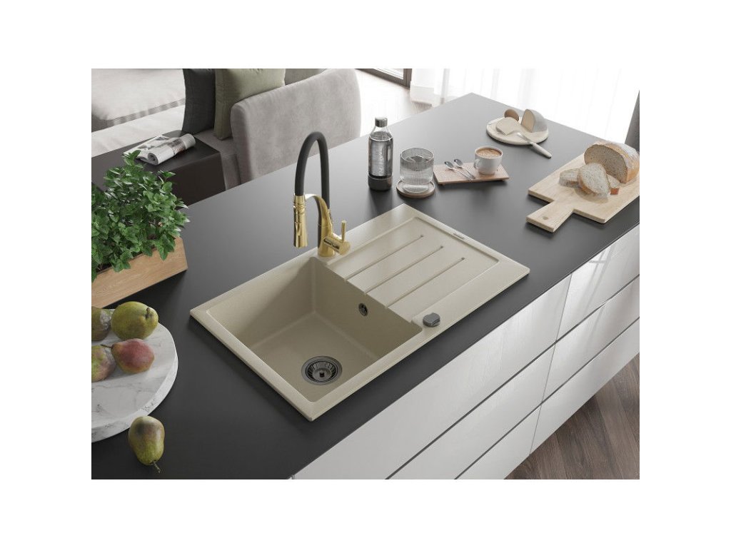 Granitový drez Mexen Bruno s 1 misou, odkapávačom a batériou Aster, béžový - 6513-69-73450-57-B