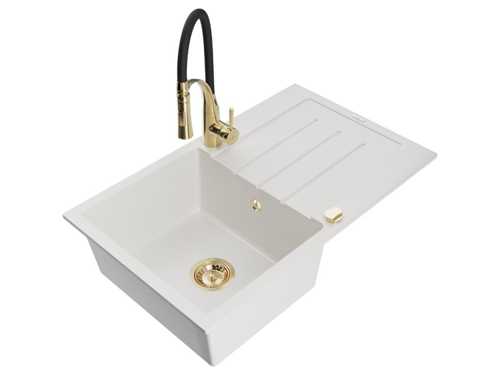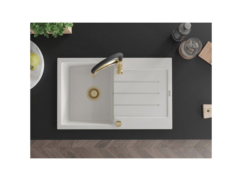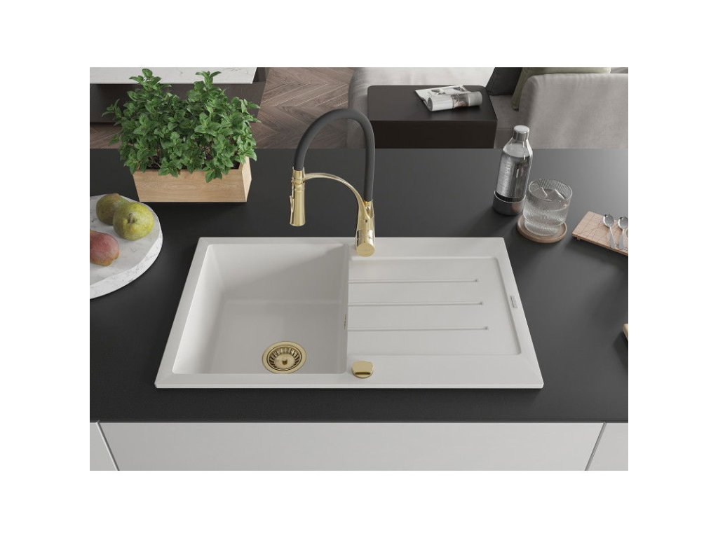 Granitový drez Mexen Bruno s 1 misou, odkapávačom a batériou Aster, biely - 6513-20-73450-57-G