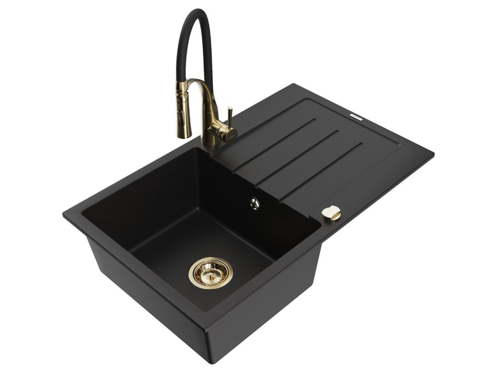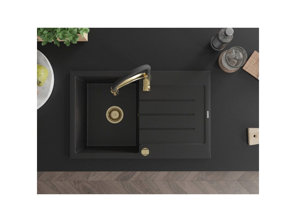 Granitový drez Mexen Bruno s 1 misou, odkapávačom a batériou Aster, čierny - 6513-77-73450-57-G