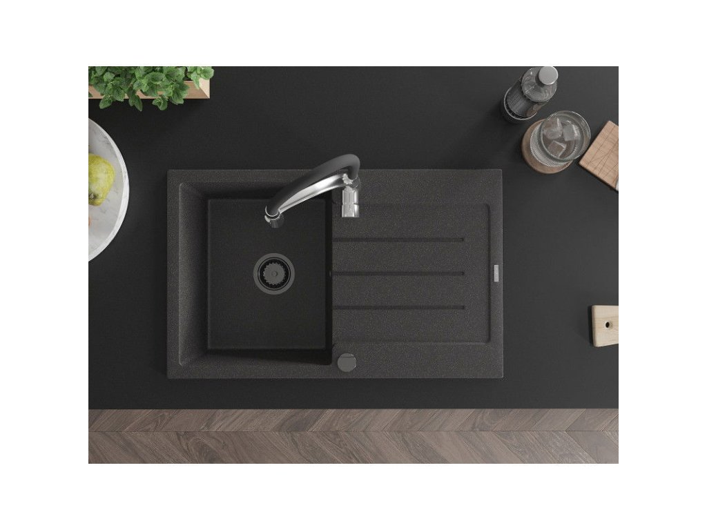 Granitový drez Mexen Bruno s 1 misou, odkapávačom a batériou Aster, čierny bodkovaný - 6513-76-73450-07-B