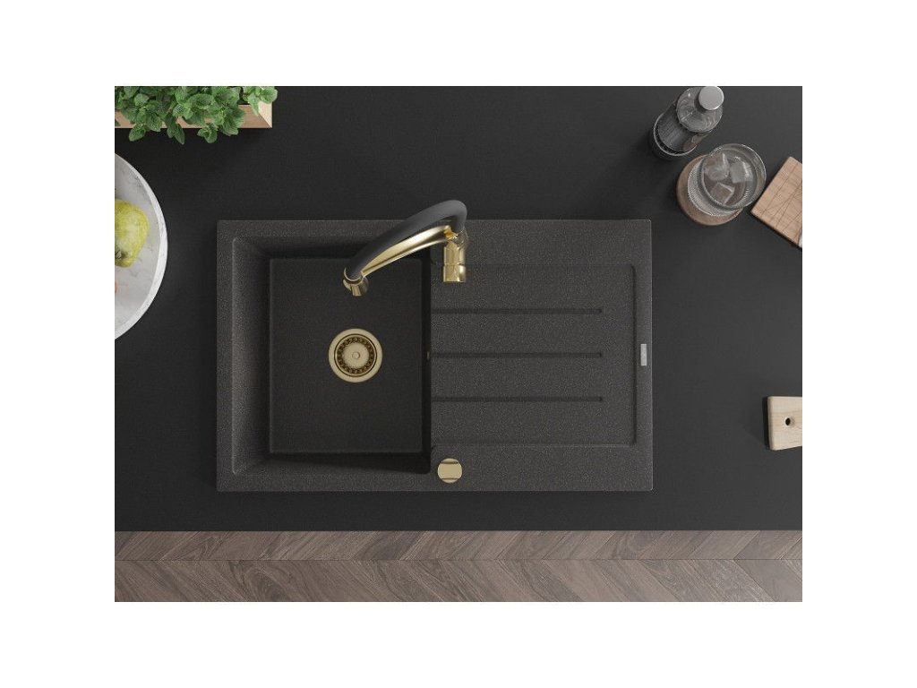 Granitový drez Mexen Bruno s 1 misou, odkapávačom a batériou Aster, čierny bodkovaný - 6513-76-73450-57-G