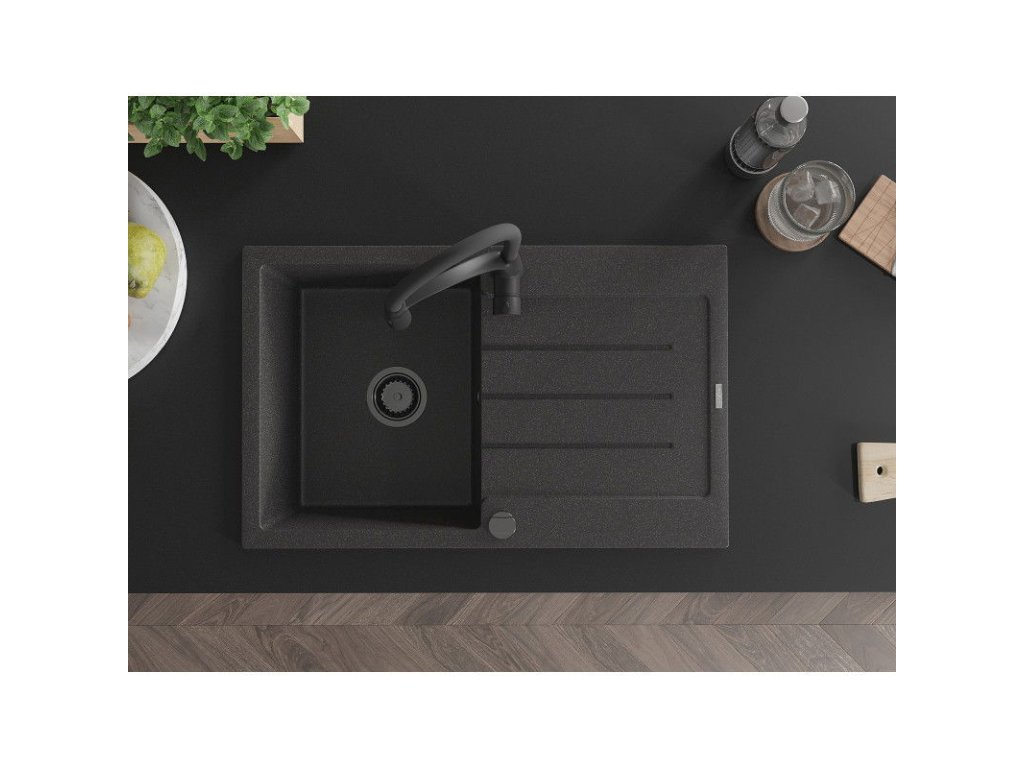Granitový drez Mexen Bruno s 1 misou, odkapávačom a batériou Aster, čierny bodkovaný - 6513-76-73450-70-B