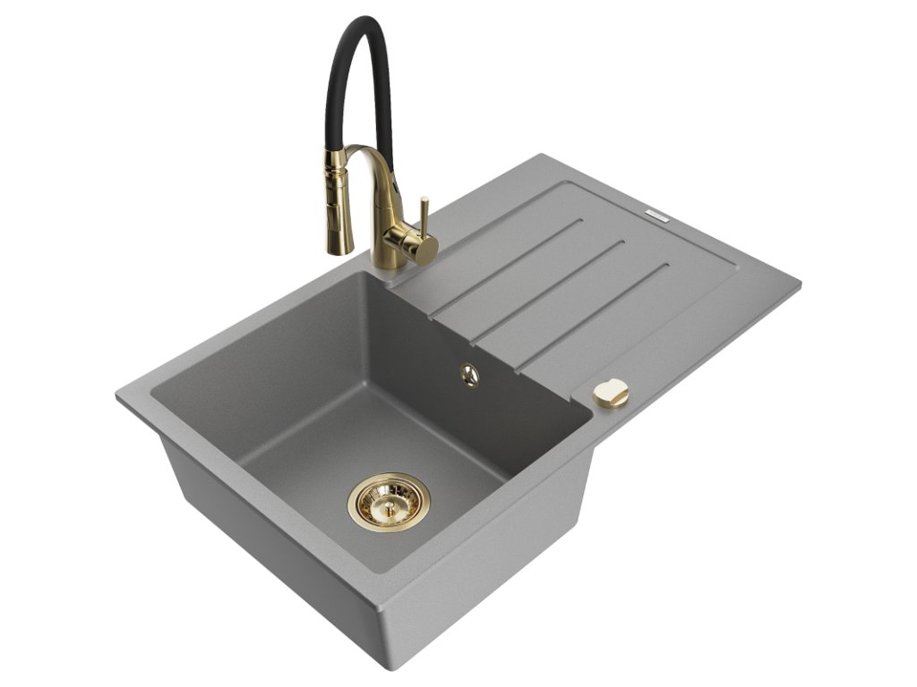 Granitový drez Mexen Bruno s 1 misou, odkapávačom a batériou Aster, sivý - 6513-71-73450-57-G