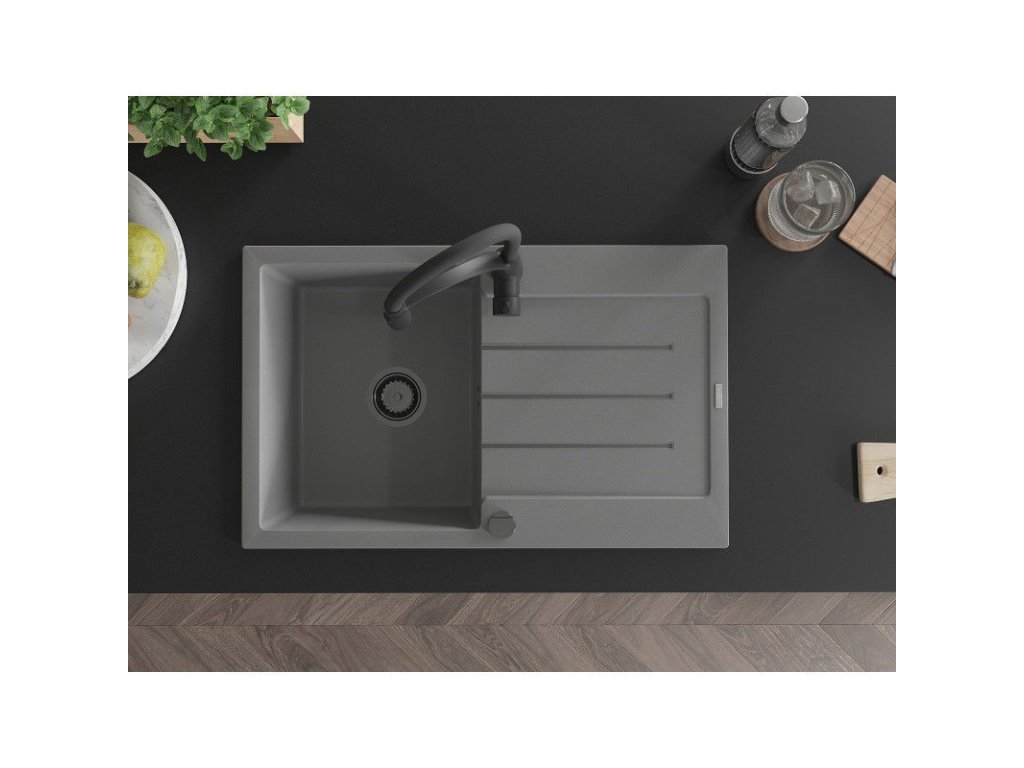 Granitový drez Mexen Bruno s 1 misou, odkapávačom a batériou Aster, sivý - 6513-71-73450-70-B