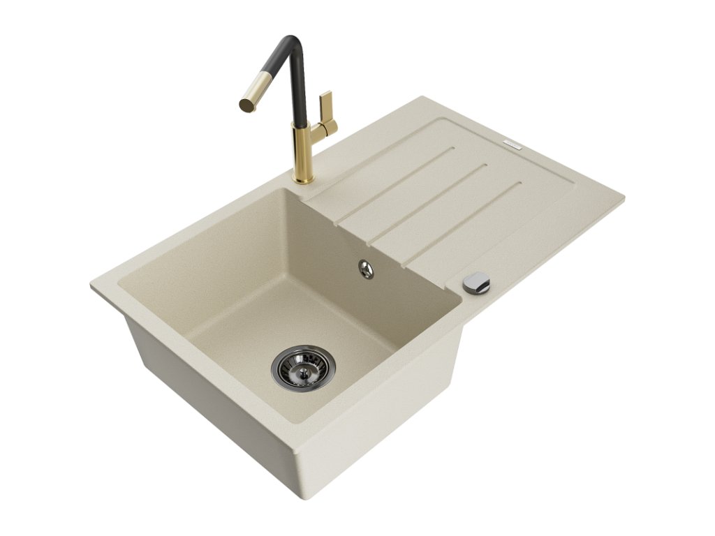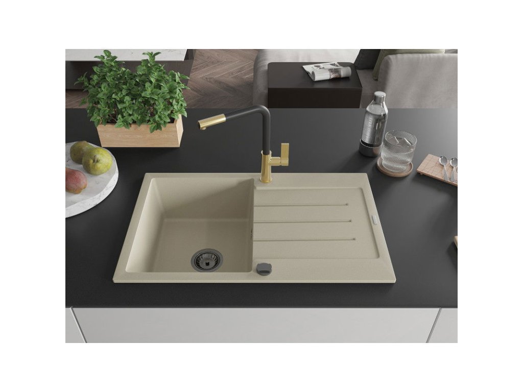 Granitový drez Mexen Bruno s 1 misou, odkapávačom a batériou Flora, béžový - 6513-69-670401-57-B