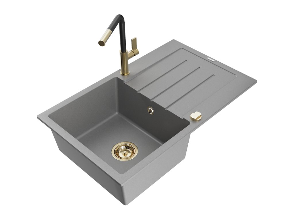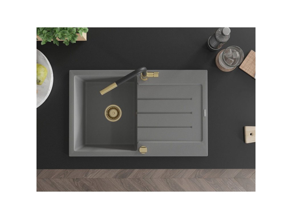 Granitový drez Mexen Bruno s 1 misou, odkapávačom a batériou Flora, sivý - 6513-71-670401-57-G