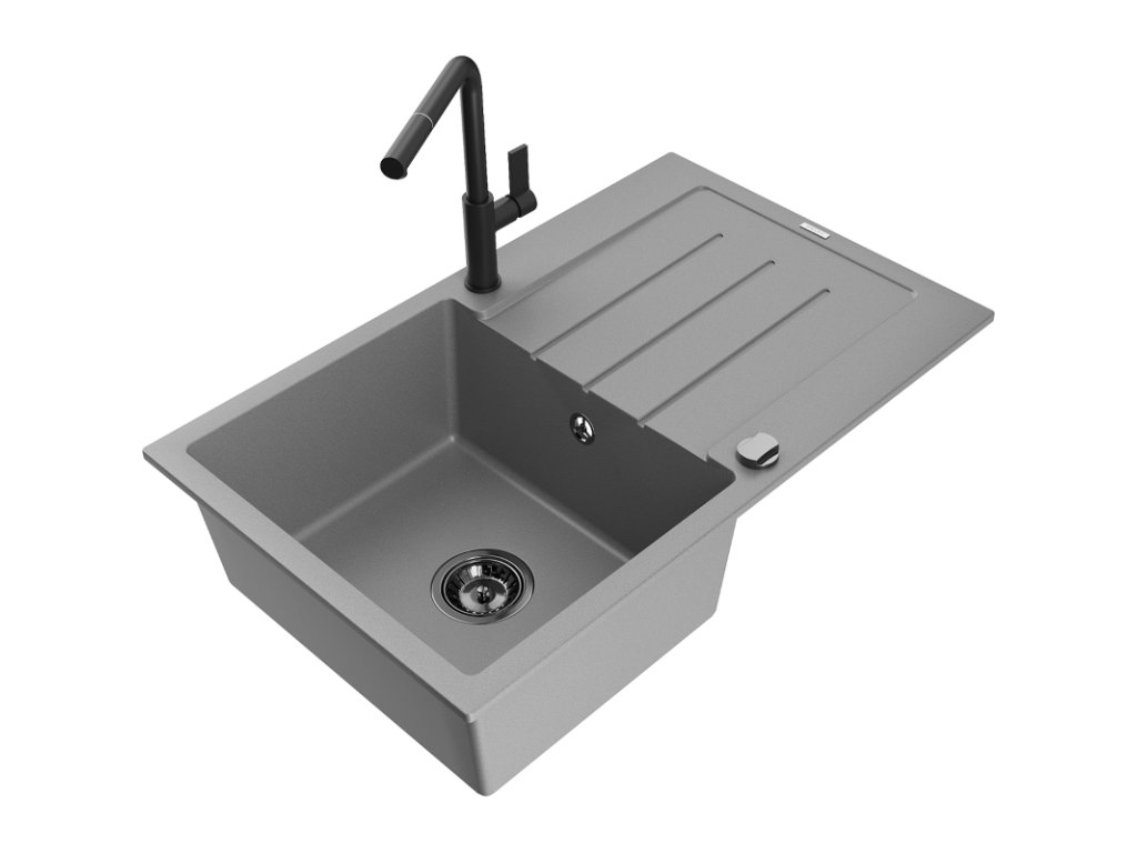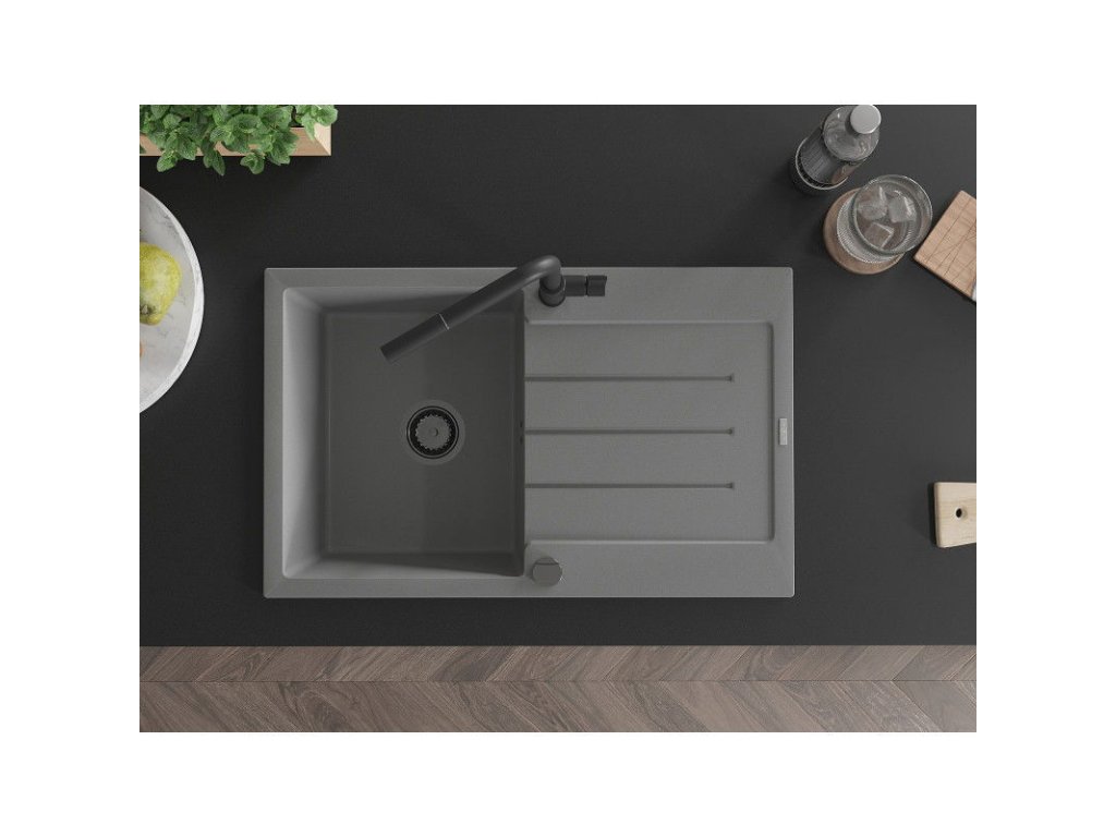 Granitový drez Mexen Bruno s 1 misou, odkapávačom a batériou Flora, sivý - 6513-71-670401-70-B