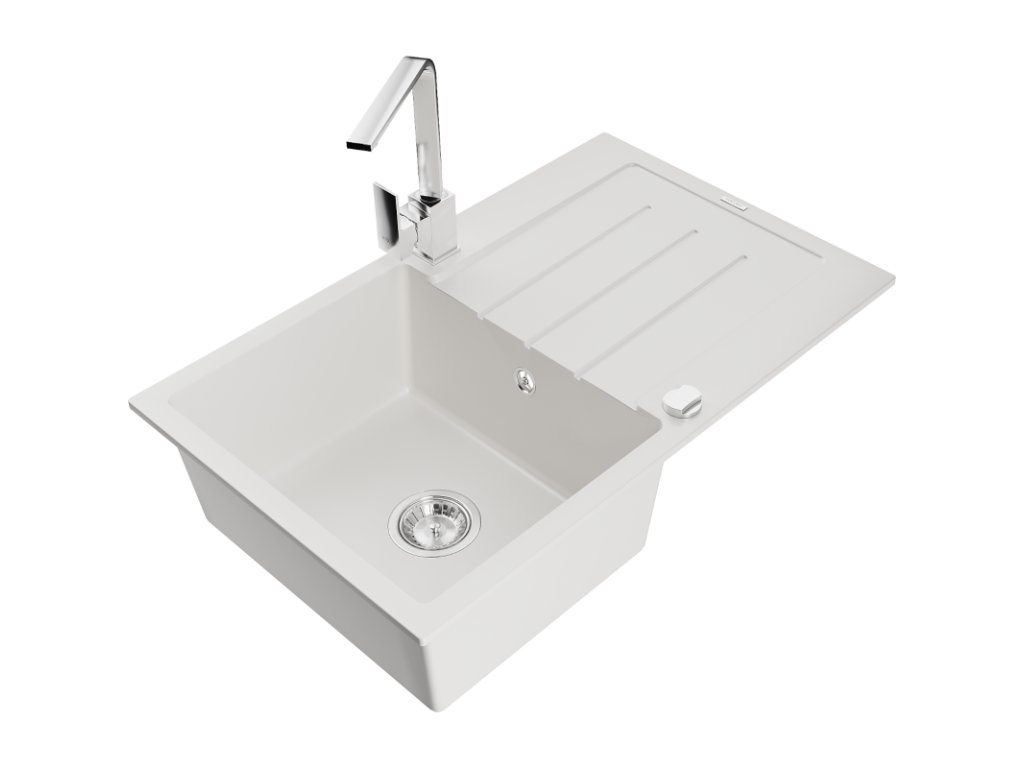 Granitový drez Mexen Bruno s 1 misou, odkapávačom a batériou Rita, biely - 6513-20-670300-00
