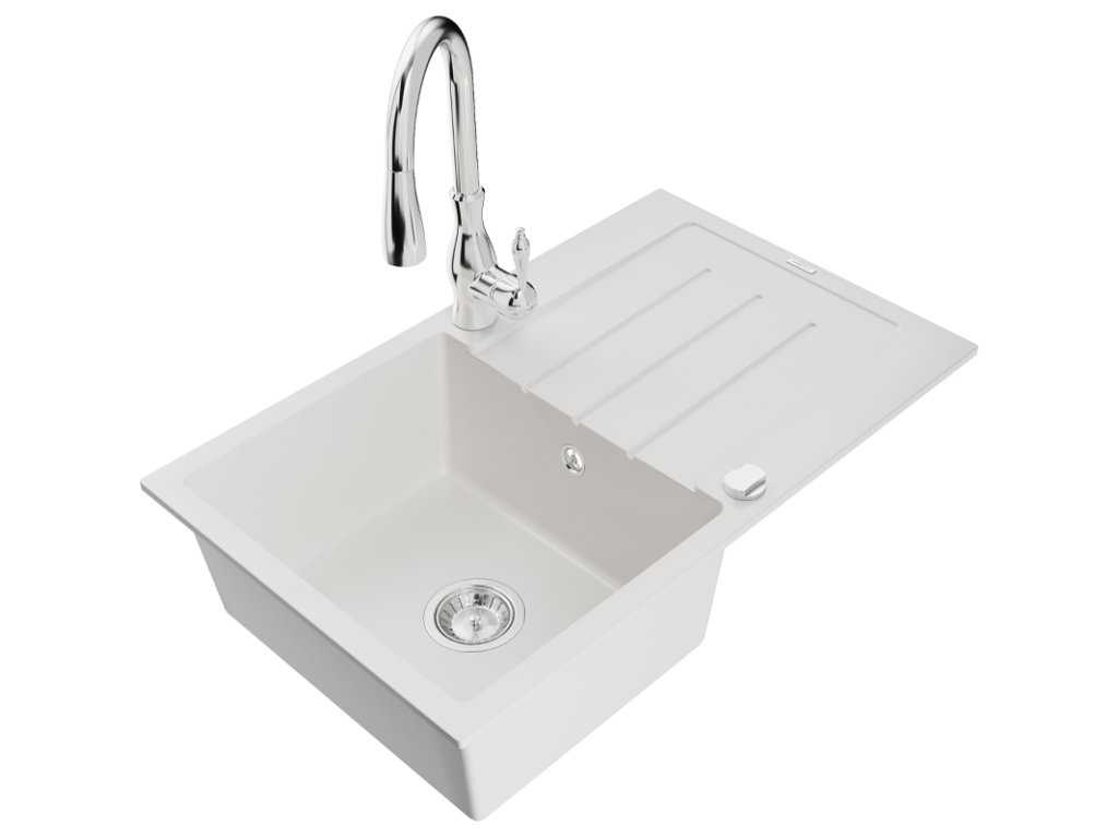 Granitový drez Mexen Bruno s 1 misou, odkapávačom a batériou Savita, biely - 6513-20-672601-00