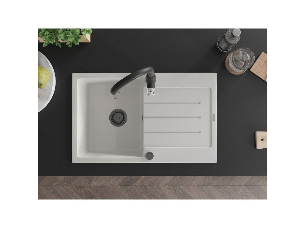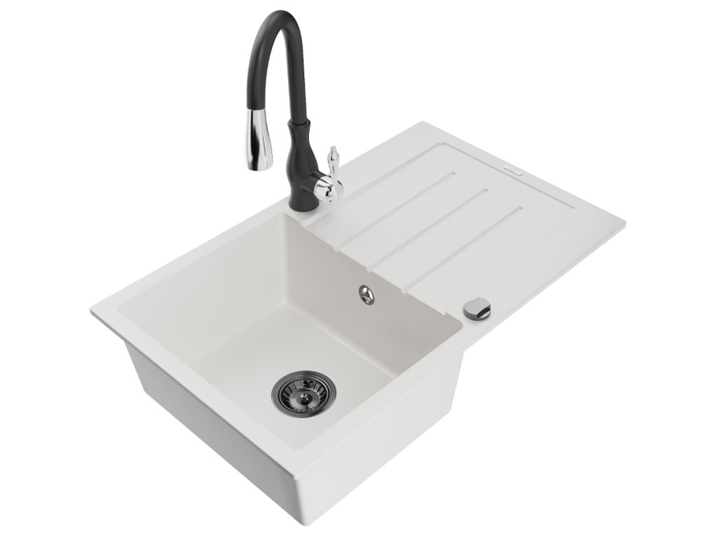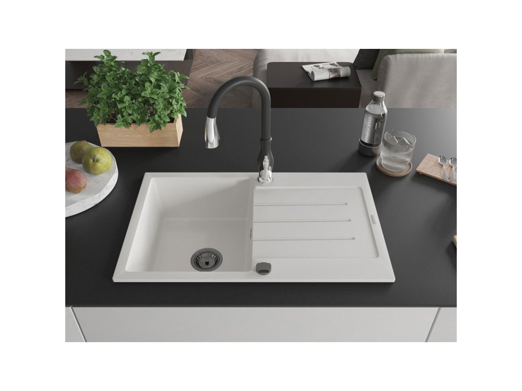 Granitový drez Mexen Bruno s 1 misou, odkapávačom a batériou Savita, biely - 6513-20-672601-70