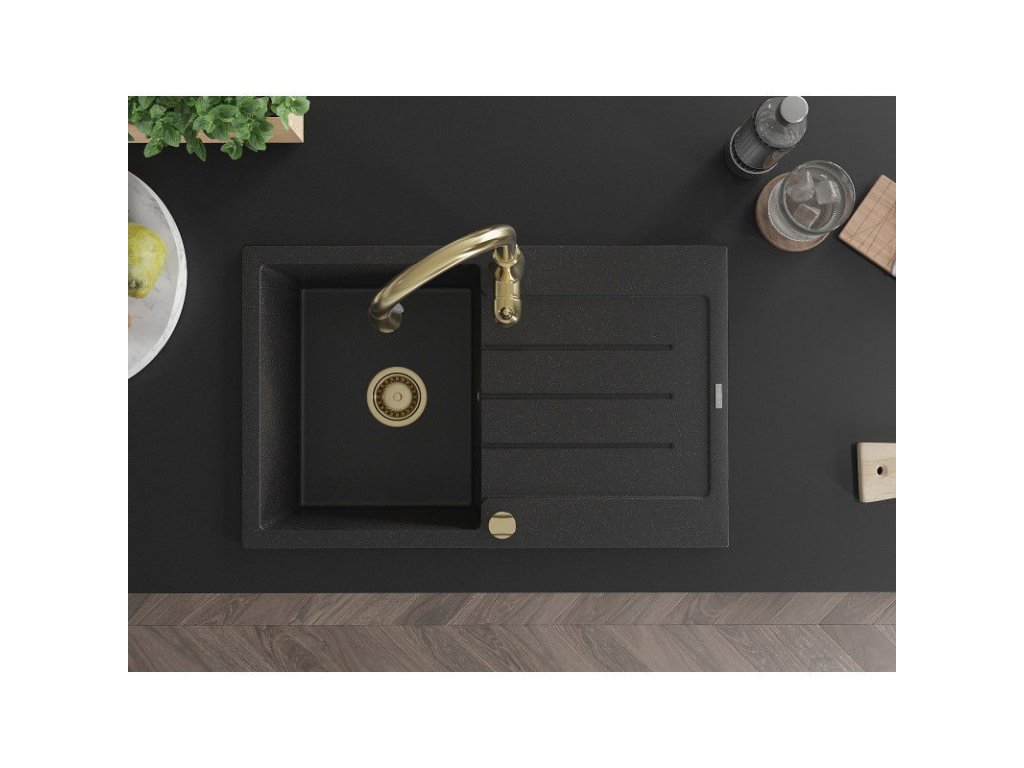 Granitový drez Mexen Bruno s 1 misou, odkapávačom a batériou Savita, čierna/strieborná metalíza - 6513-73-672601-50
