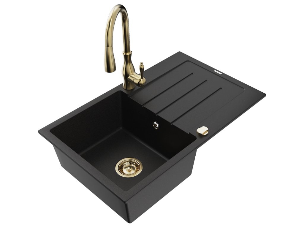 Granitový drez Mexen Bruno s 1 misou, odkapávačom a batériou Savita, čierny - 6513-77-672601-50