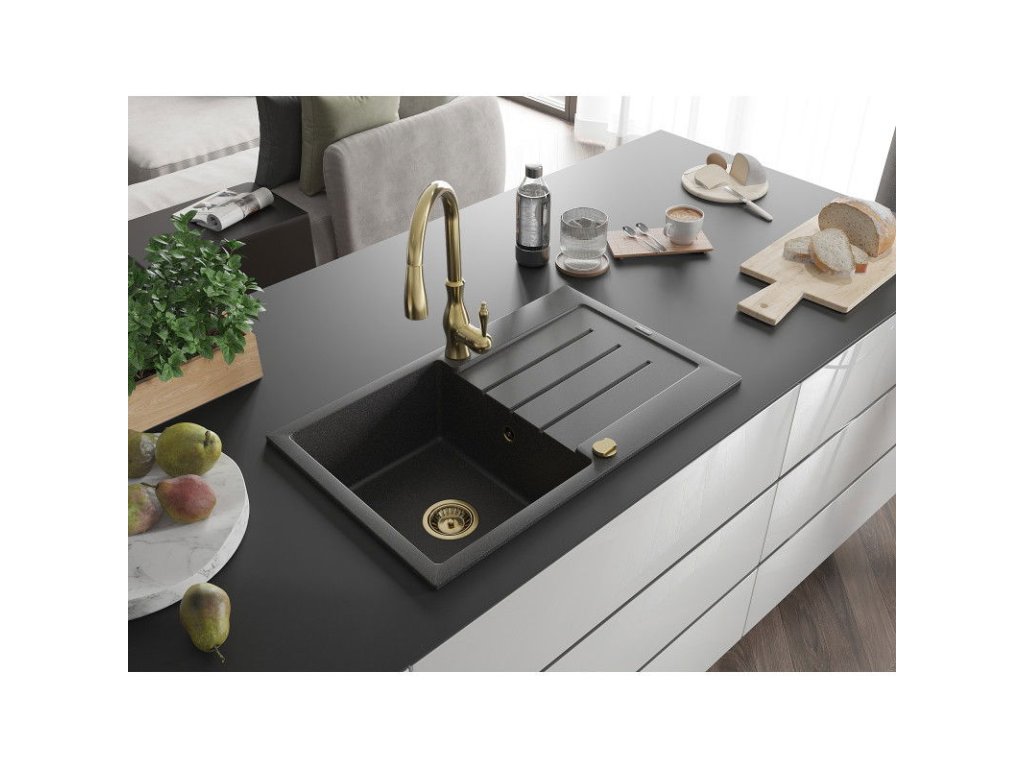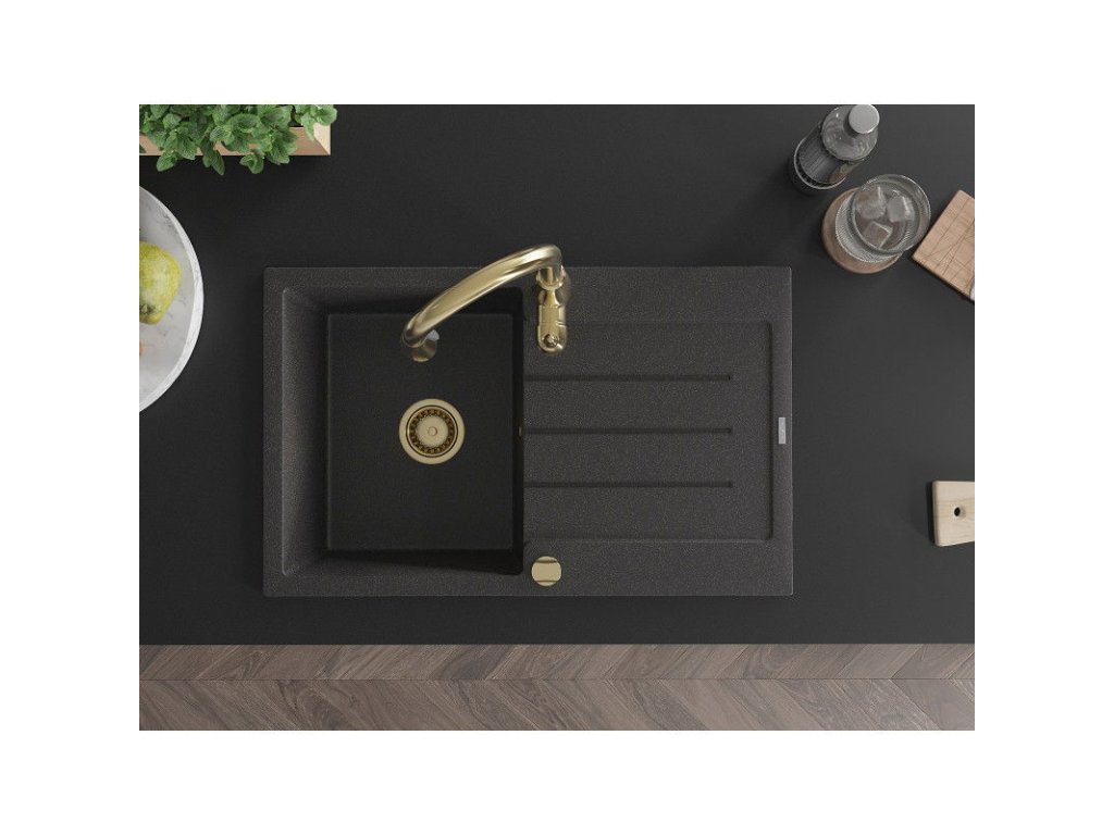 Granitový drez Mexen Bruno s 1 misou, odkapávačom a batériou Savita, čierny bodkovaný - 6513-76-672601-50