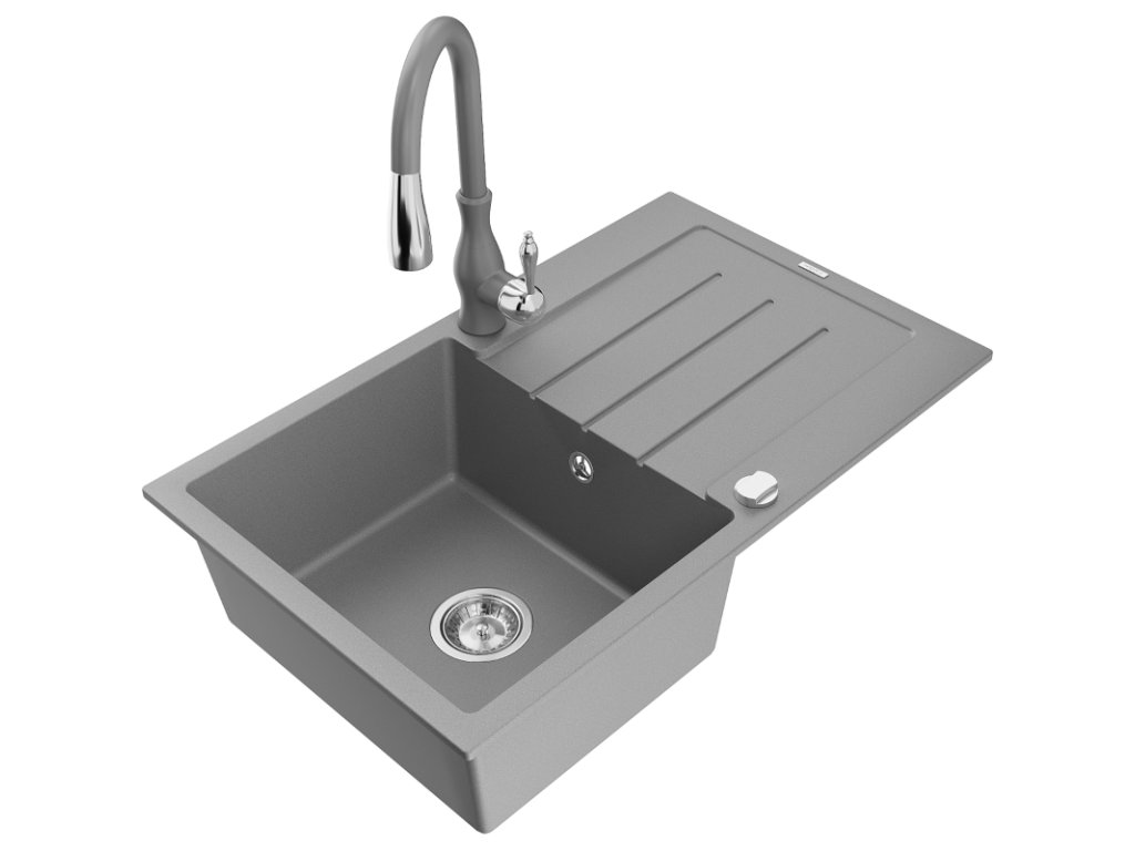 Granitový drez Mexen Bruno s 1 misou, odkapávačom a batériou Savita, sivý - 6513-71-672601-71