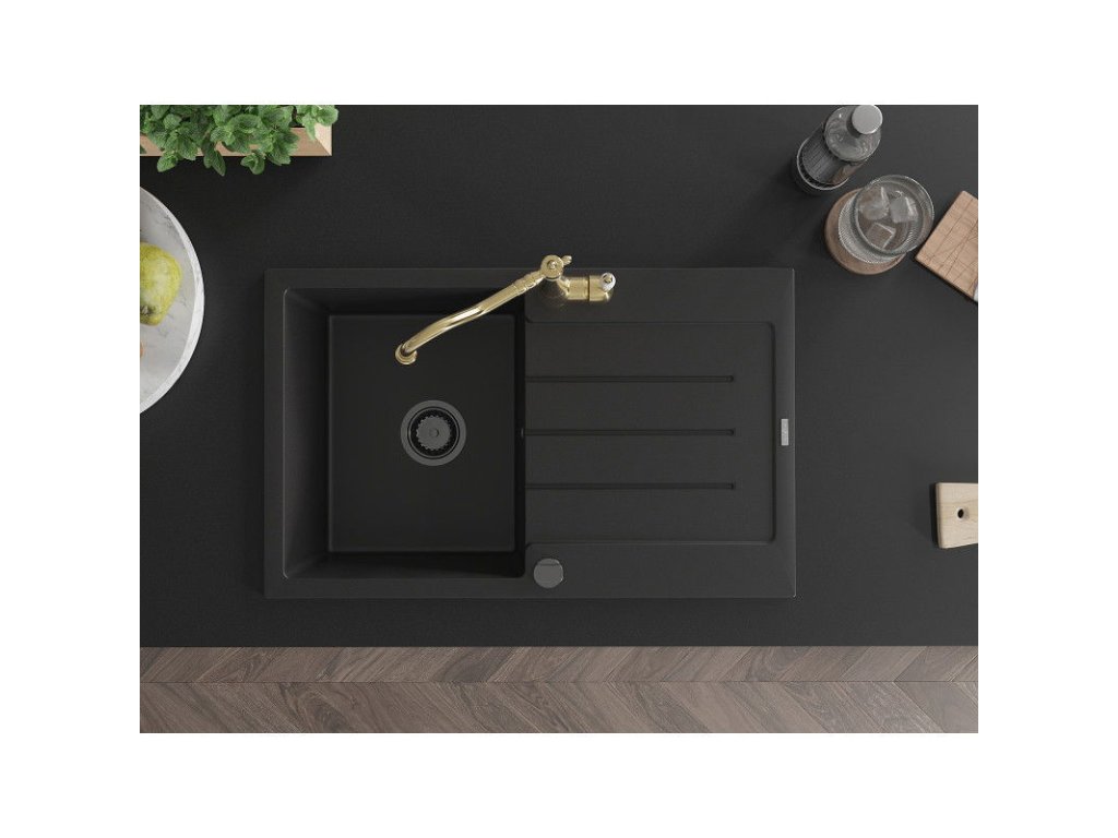Granitový drez Mexen Bruno s 1 misou, odkapávačom a kuchynskou batériou Carla, čierny - 6513-77-670700-50-B