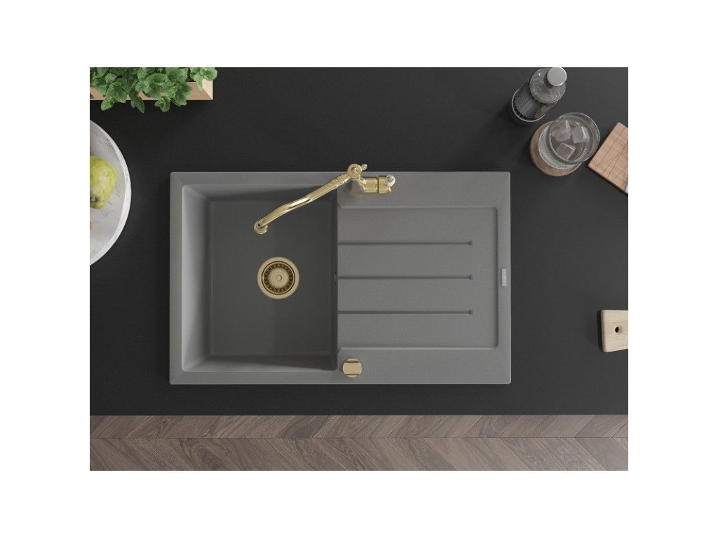 Granitový drez Mexen Bruno s 1 misou, odkapávačom a kuchynskou batériou Carla, sivý - 6513-71-670700-50