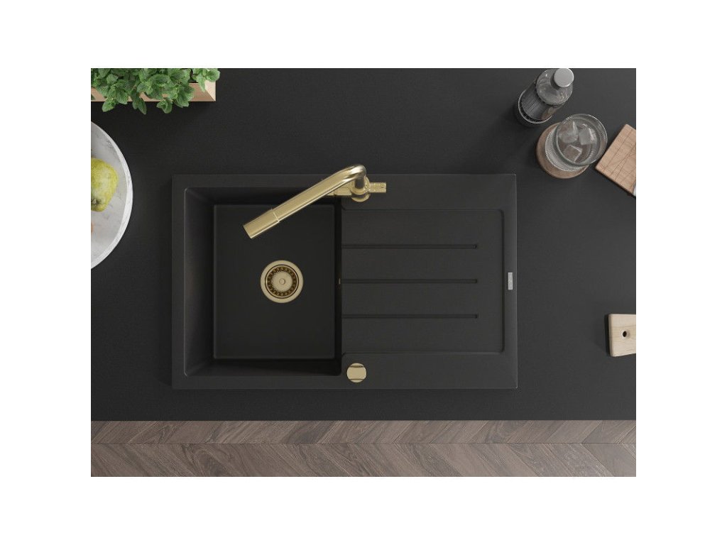 Granitový drez Mexen Bruno s 1 misou, odkapávačom a kuchynskou batériou Duero, čierny - 6513-77-671600-50