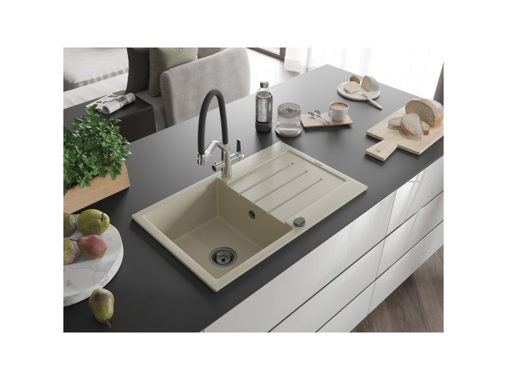 Granitový drez Mexen Bruno s 1 misou, odkapávačom a kuchynskou batériou Duo, béžový - 6513-69-671701-07-B
