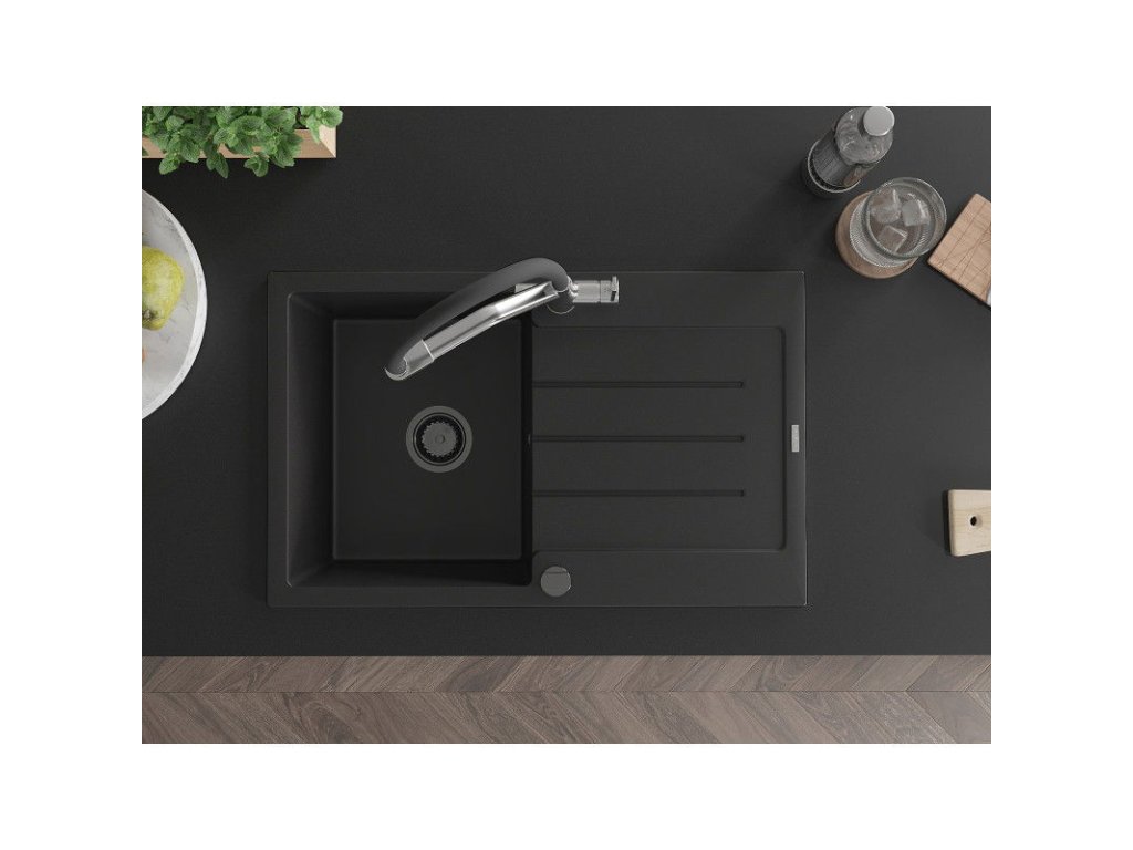 Granitový drez Mexen Bruno s 1 misou, odkapávačom a kuchynskou batériou Duo, čierny - 6513-77-671701-07-B
