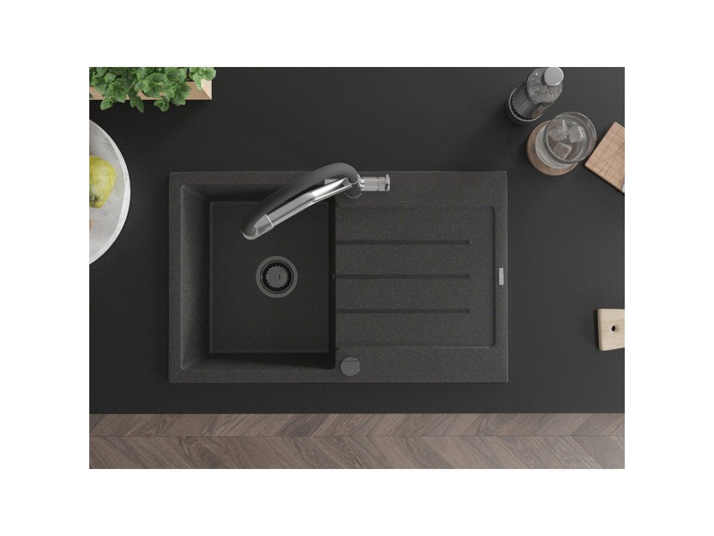 Granitový drez Mexen Bruno s 1 misou, odkapávačom a kuchynskou batériou Duo, čierny bodkovaný - 6513-76-671701-07-B
