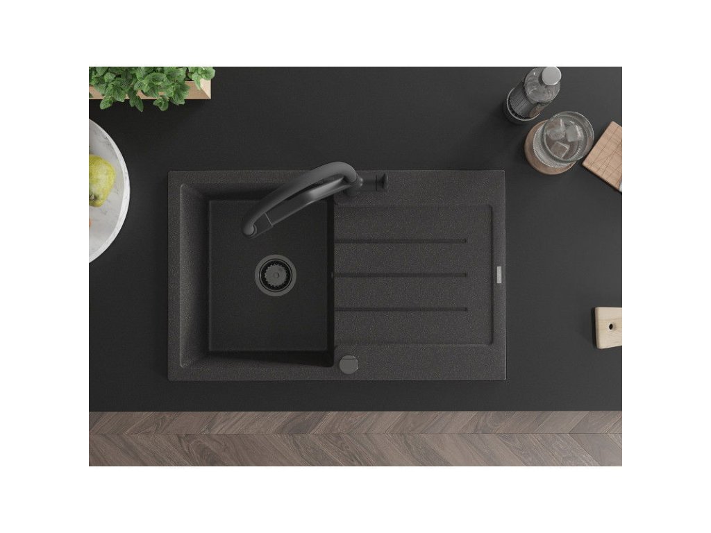 Granitový drez Mexen Bruno s 1 misou, odkapávačom a kuchynskou batériou Duo, čierny bodkovaný - 6513-76-671701-70-B