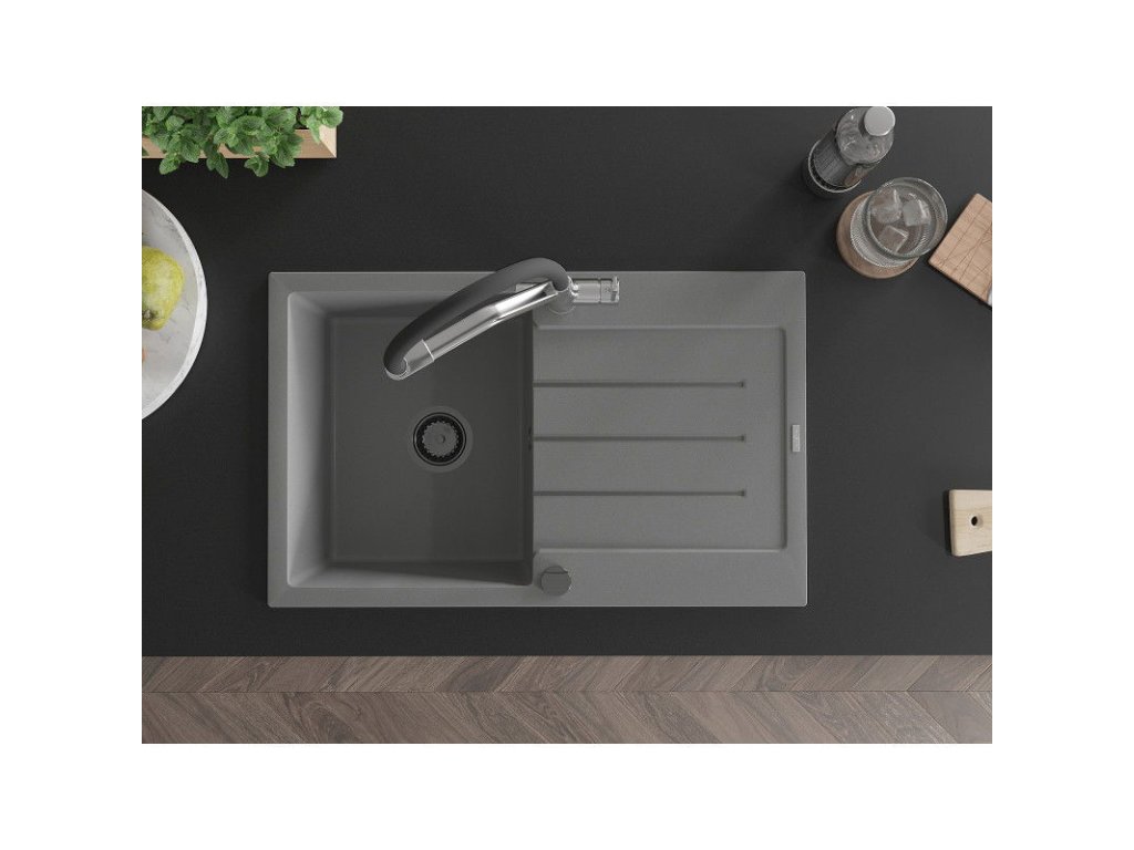 Granitový drez Mexen Bruno s 1 misou, odkapávačom a kuchynskou batériou Duo, sivý - 6513-71-671701-07-B