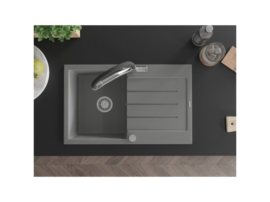 Granitový drez Mexen Bruno s 1 misou, odkapávačom a kuchynskou batériou Duo, sivý - 6513-71-671701-07